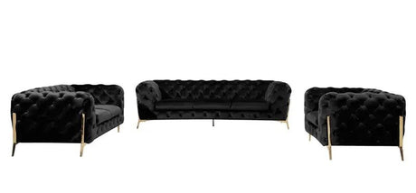 Divani Casa Sheila - Conjunto de sofá moderno de terciopelo negro Vgca1346-Blk