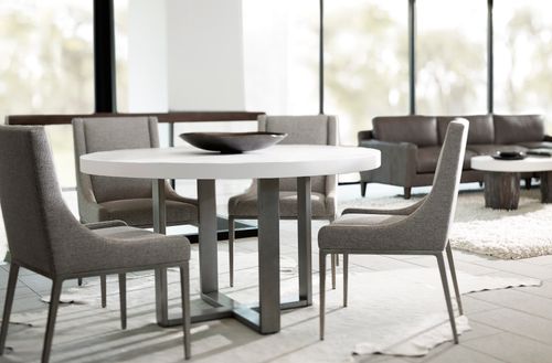 Mesa de comedor redonda Merrion con base de hormigón y acero | Bernhardt
