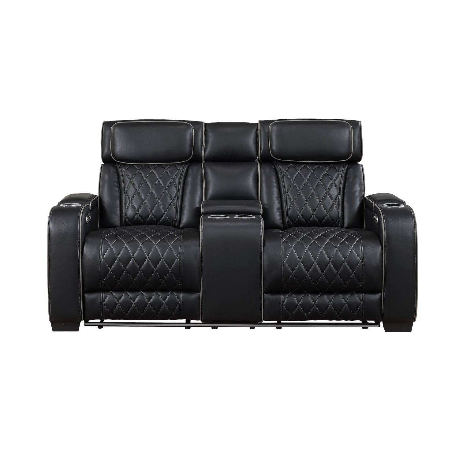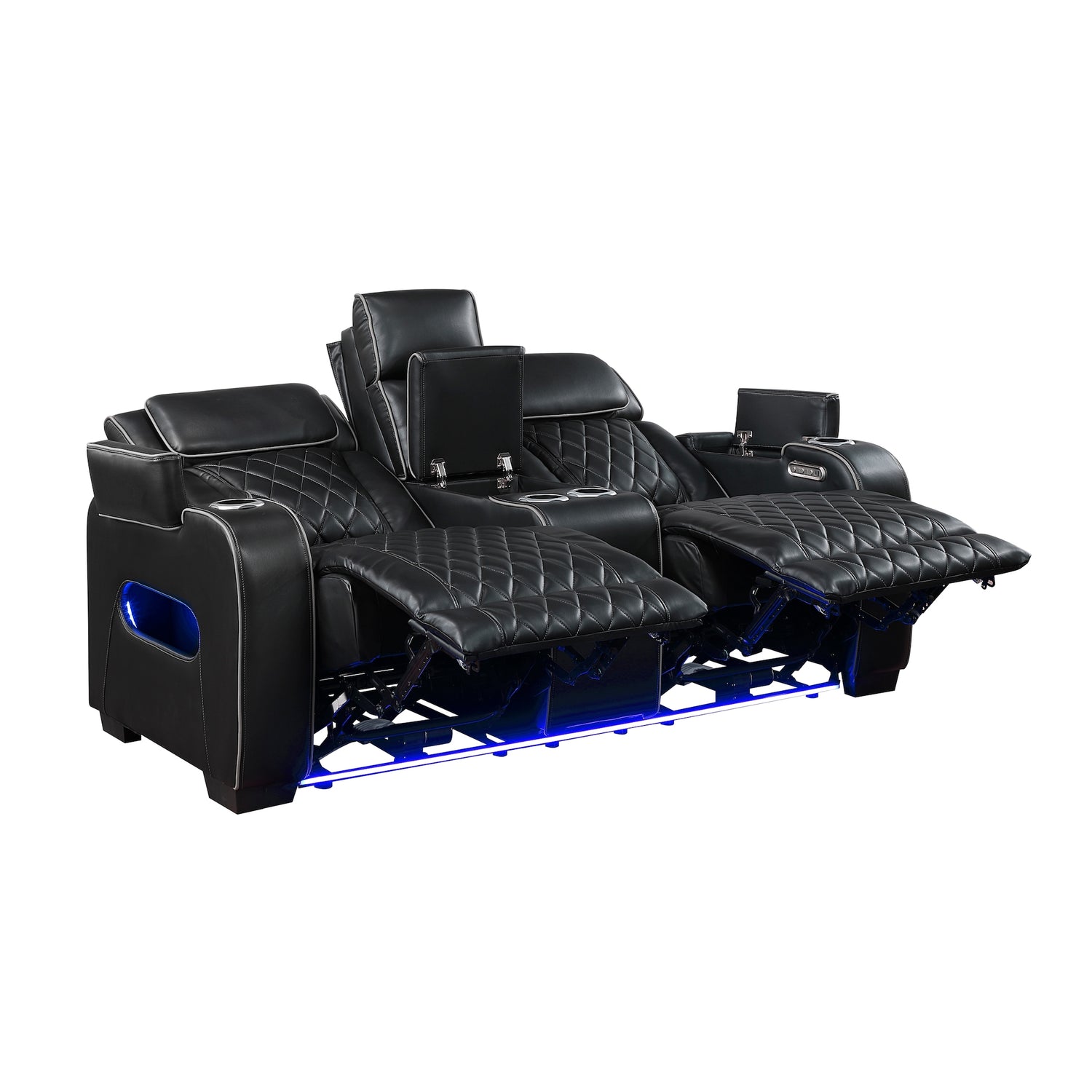 Sofá reclinable eléctrico Fairway de dos plazas en piel sintética negra con iluminación LED | Homelegance