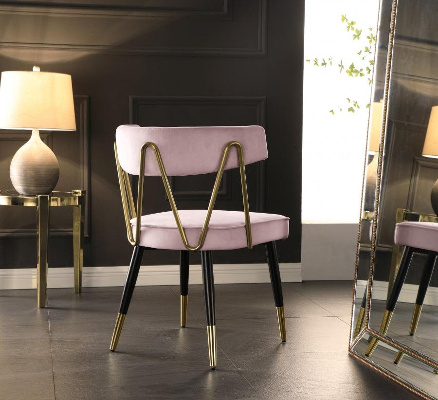 Meridian Furniture - Juego de 2 sillas de comedor de terciopelo Rheingold en rosa - 854Pink-C