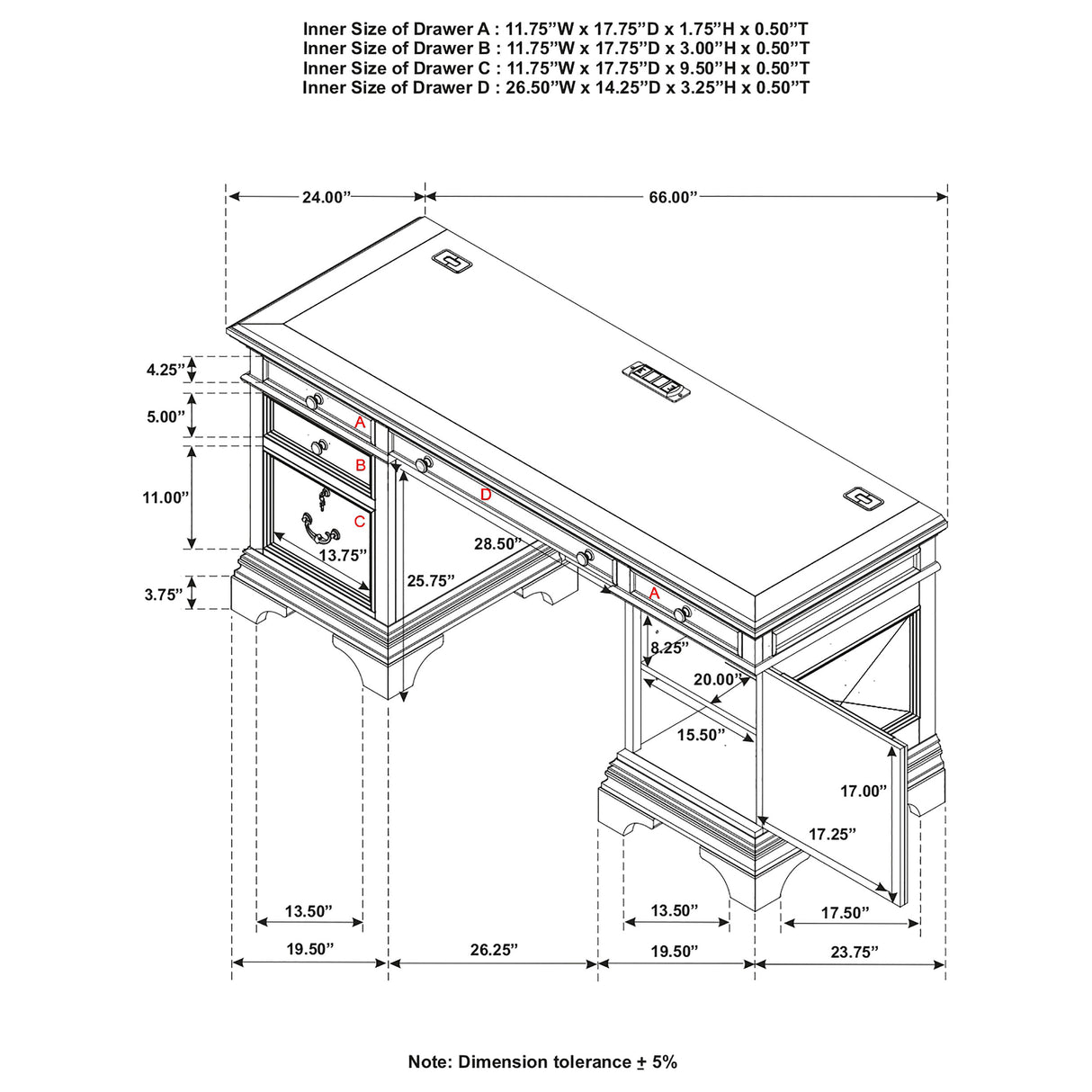 Escritorio Credenza: 66,00" de ancho x 24,00" de profundidad x 31,25" de alto