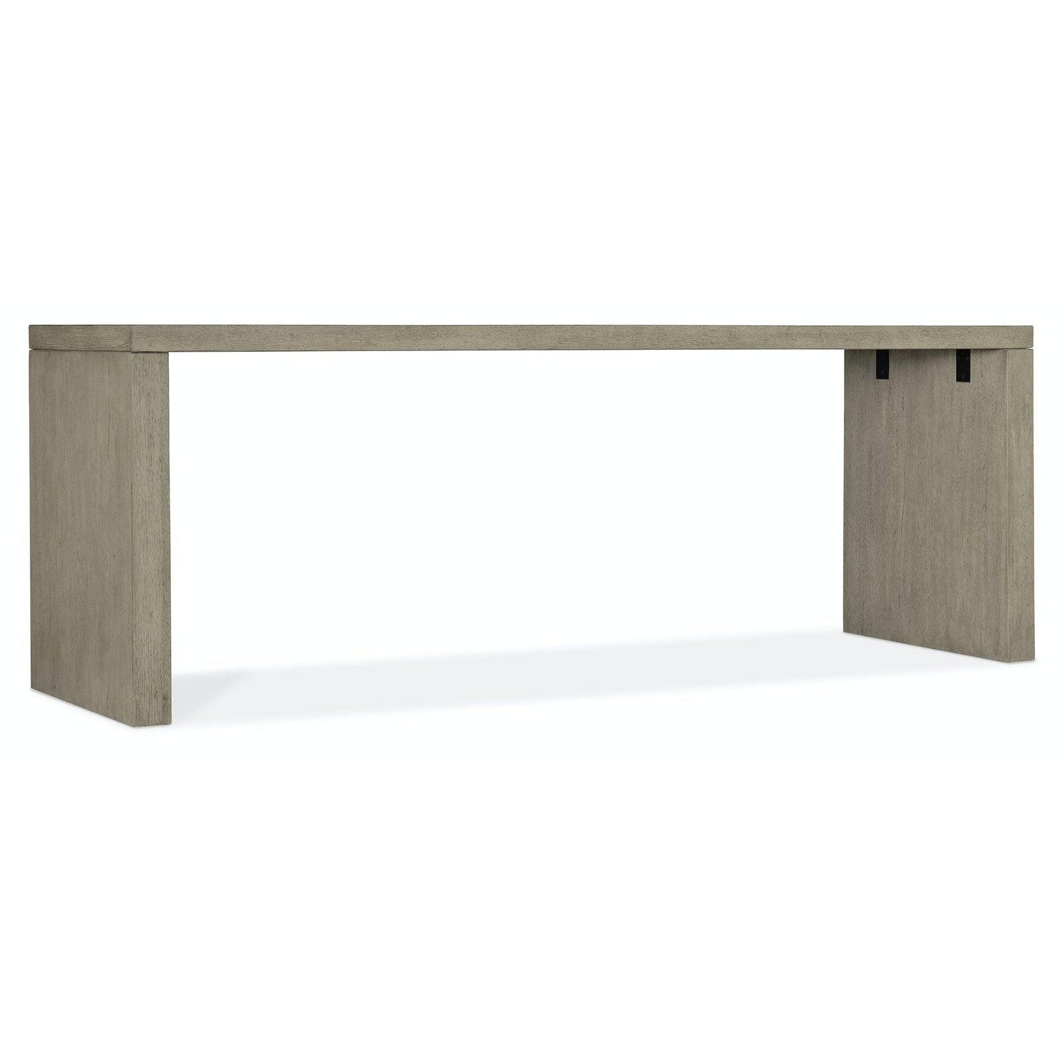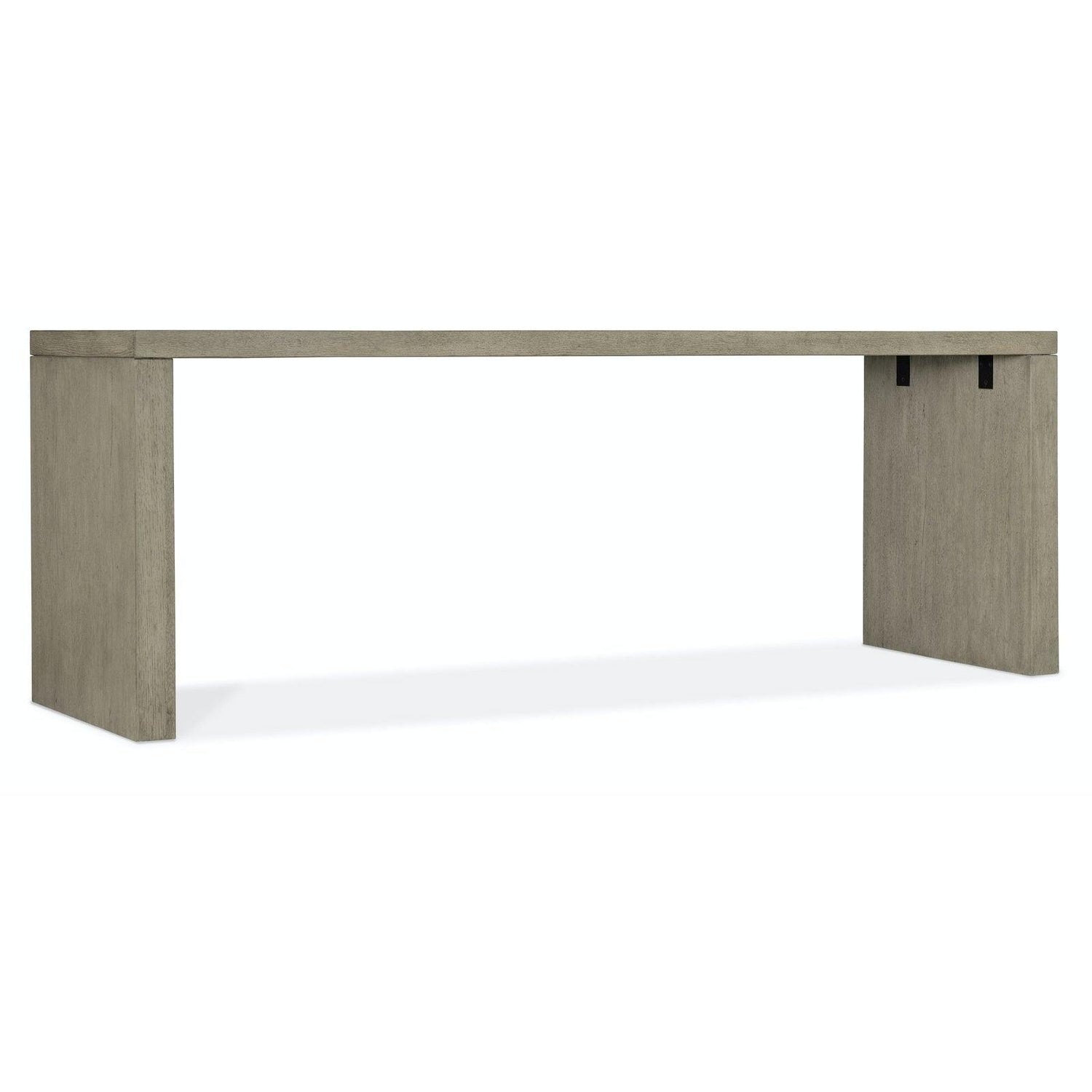 De líneas minimalistas e inspiración natural, el escritorio Linville Falls de 152 cm de Hooker Furniture aporta elegancia rústica a tu oficina en casa. Con una silueta rectangular minimalista y fabricado con chapas de roble en un suave acabado visón gris ahumado, este escritorio está flanqueado por dos robustos paneles en los extremos de las patas. Completamente acabado por todos sus lados, es ideal para espacios abiertos o para colocarlo en el centro de una habitación.