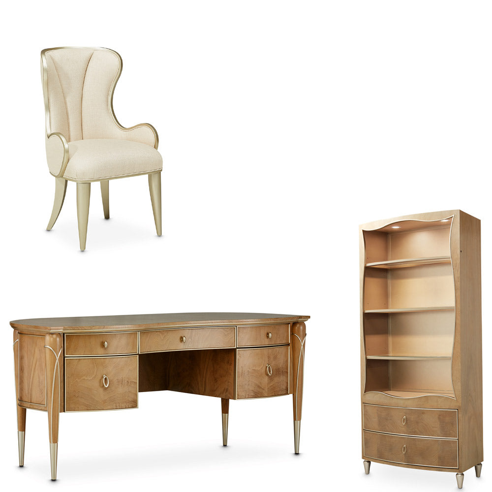 AICO - Juego de escritorio de oficina Villa Cherie Caramel de 3 piezas en Chardonnay - N9008207-134-3SET