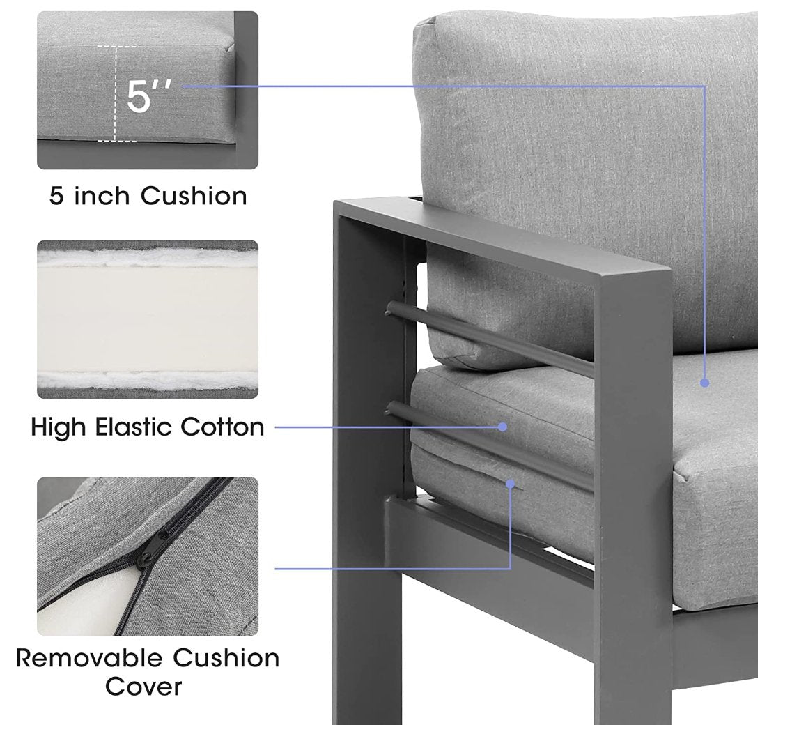 - Es el marco de ALUMINIO PURO completamente soldado lo que distingue nuestro conjunto de muebles de patio de otros muebles de metal.