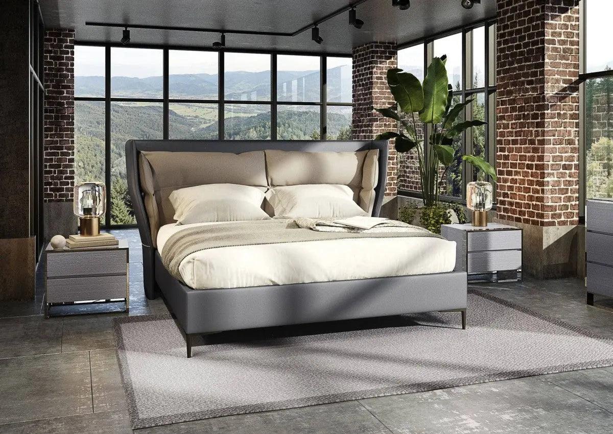 Modrest Jolene - Cama Eastern King de polipiel gris oscuro y claro - VGBBMA2013K-GRY-BED-EK | VIG