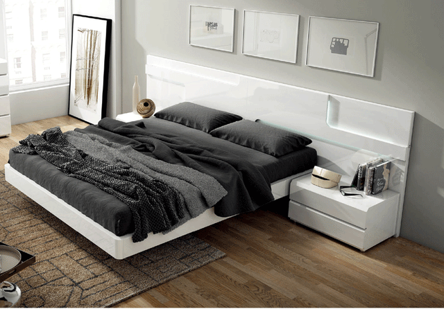 Muebles ESF - Cama Sara Eastern King con listones de madera en blanco brillante - SARABEDKS