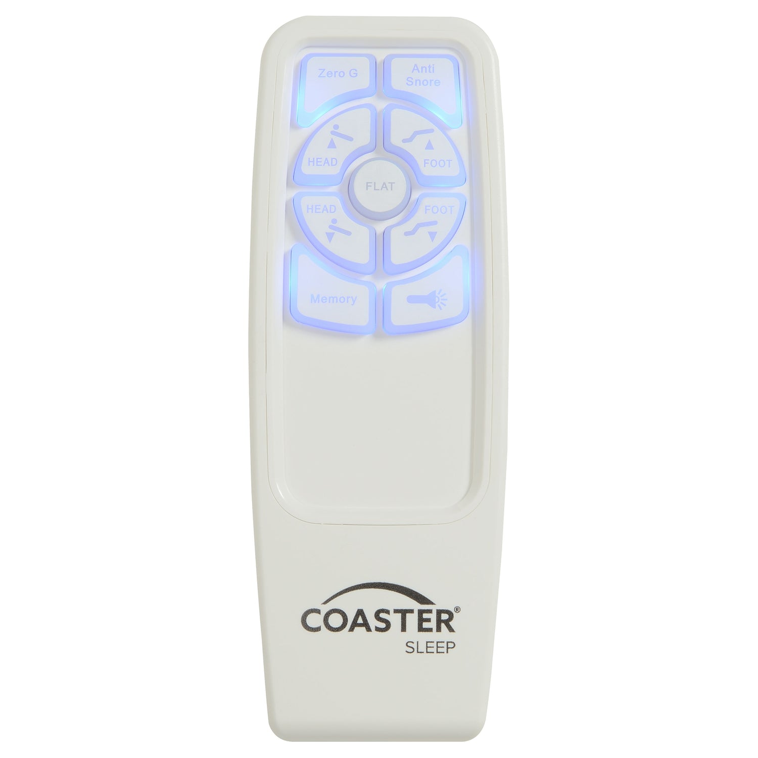- El control remoto inalámbrico cuenta con controles táctiles suaves retroiluminados para inclinación independiente de la cabeza y los pies, posiciones preestablecidas de gravedad cero, antirronquidos, planas y con memoria, así como una práctica linterna integrada.