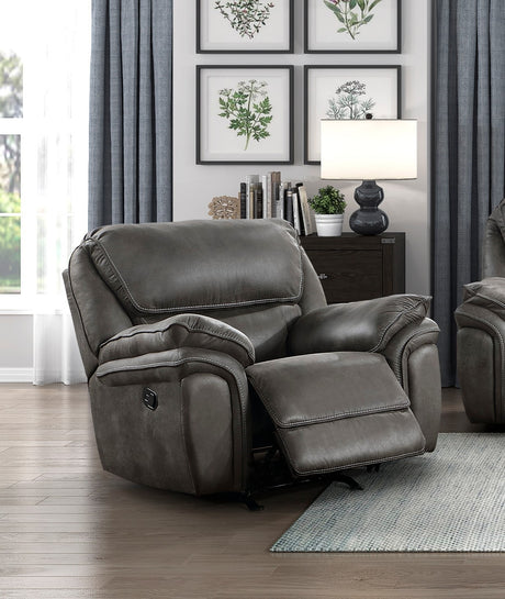 Sillón reclinable eléctrico Man-Den con reposacabezas ajustable en cuero gris - Ashley