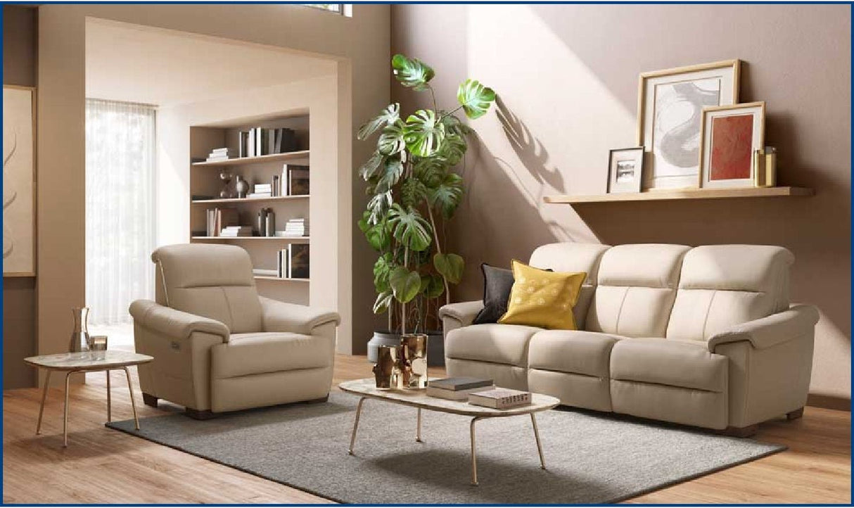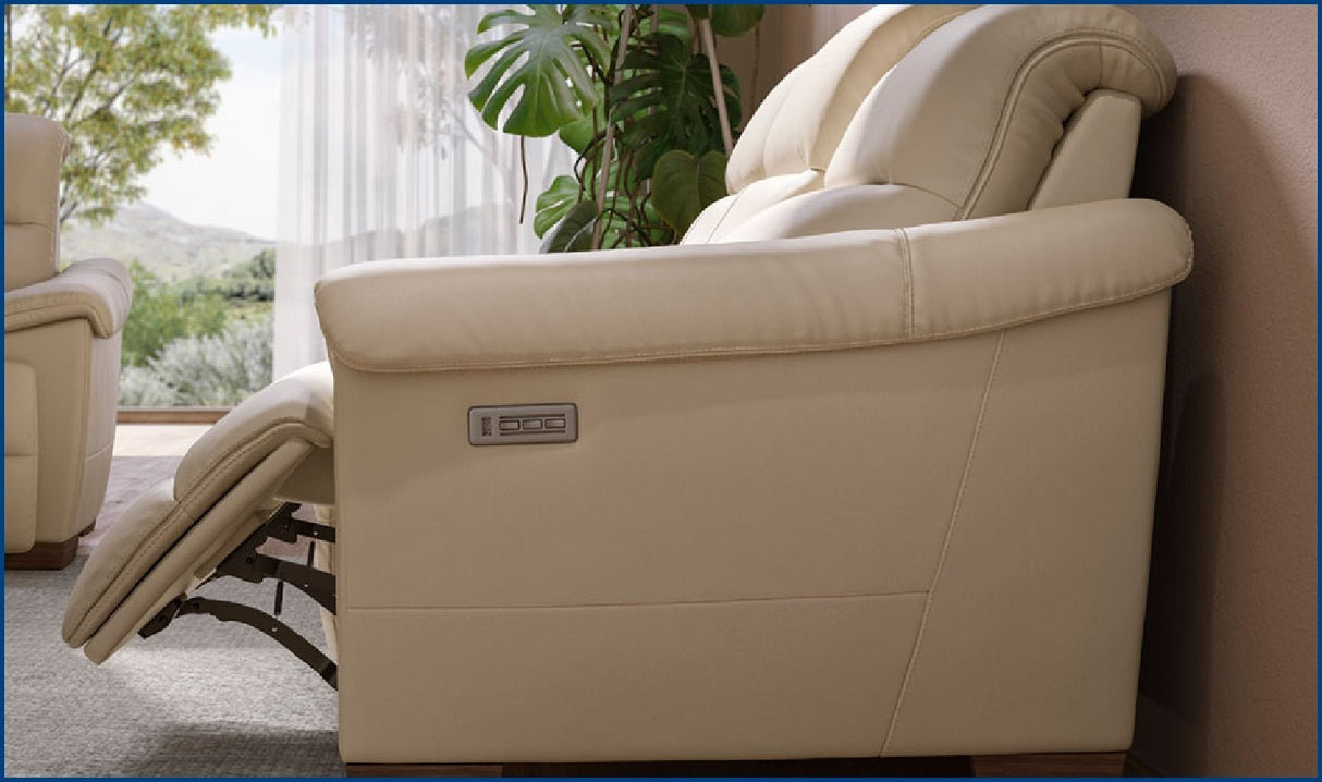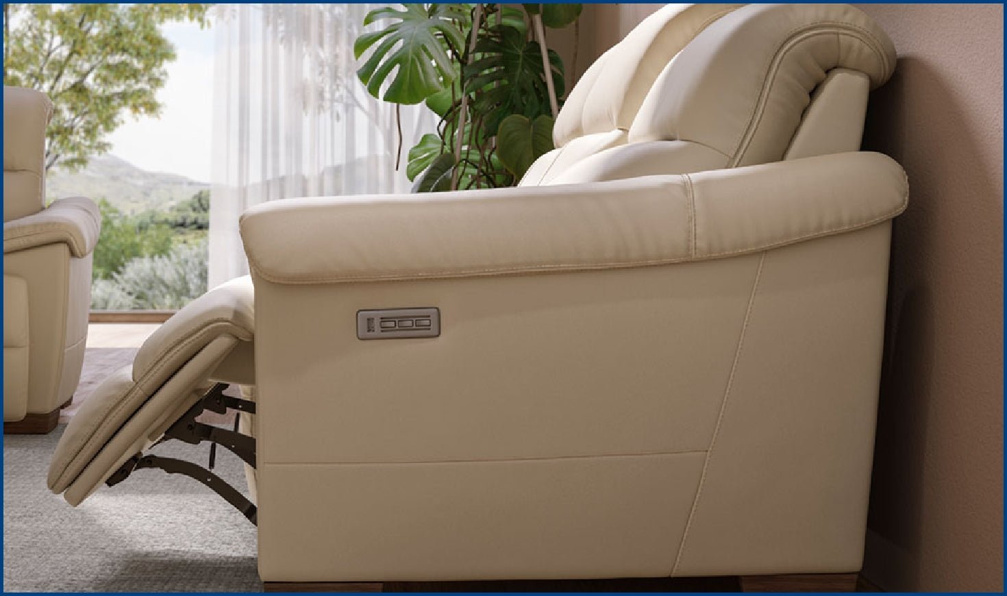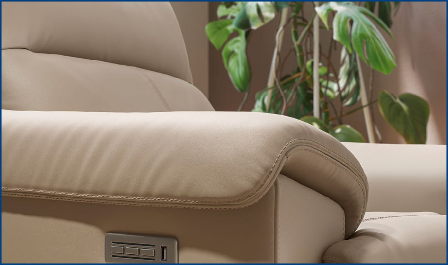 Gracias a la tecnología opcional Cubicomfort™ Triple-Motion, cada asiento cuenta con tres mecanismos de movimiento eléctricos independientes que permiten ajustar la posición del cojín, el respaldo, el reposapiés y el reposacabezas según sus preferencias. Acceder al modo relax total es facilísimo gracias a un interruptor inteligente en el panel lateral, que también incluye un puerto USB.