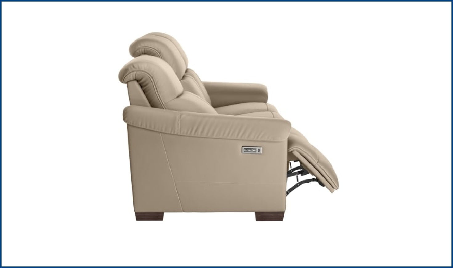 - Las piezas con sillones reclinables eléctricos cuentan con botones externos suaves al tacto en el brazo para activar el mecanismo.