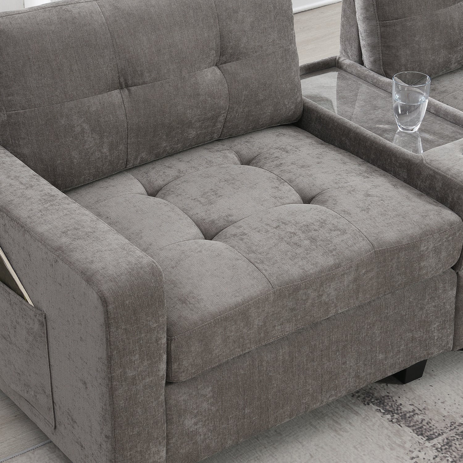 - Dual Side Storage Pockets: Designed with storage pockets on both sides, this sofa makes it easy to keep essential items like books, magazines, or remote controls within reach. These side pockets are practical for everyday use, helping to reduce clutter and make your living space more organized.