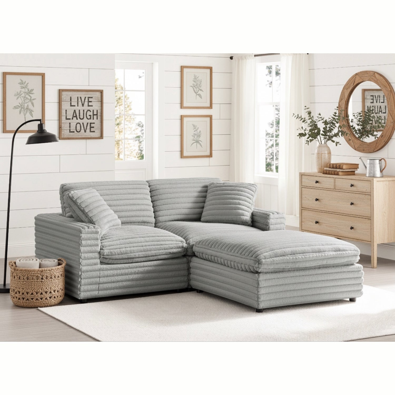 Jenny 3-Piece Chofa Modular Sectional in Plush Gray Polyester Cord-Like Fabric
