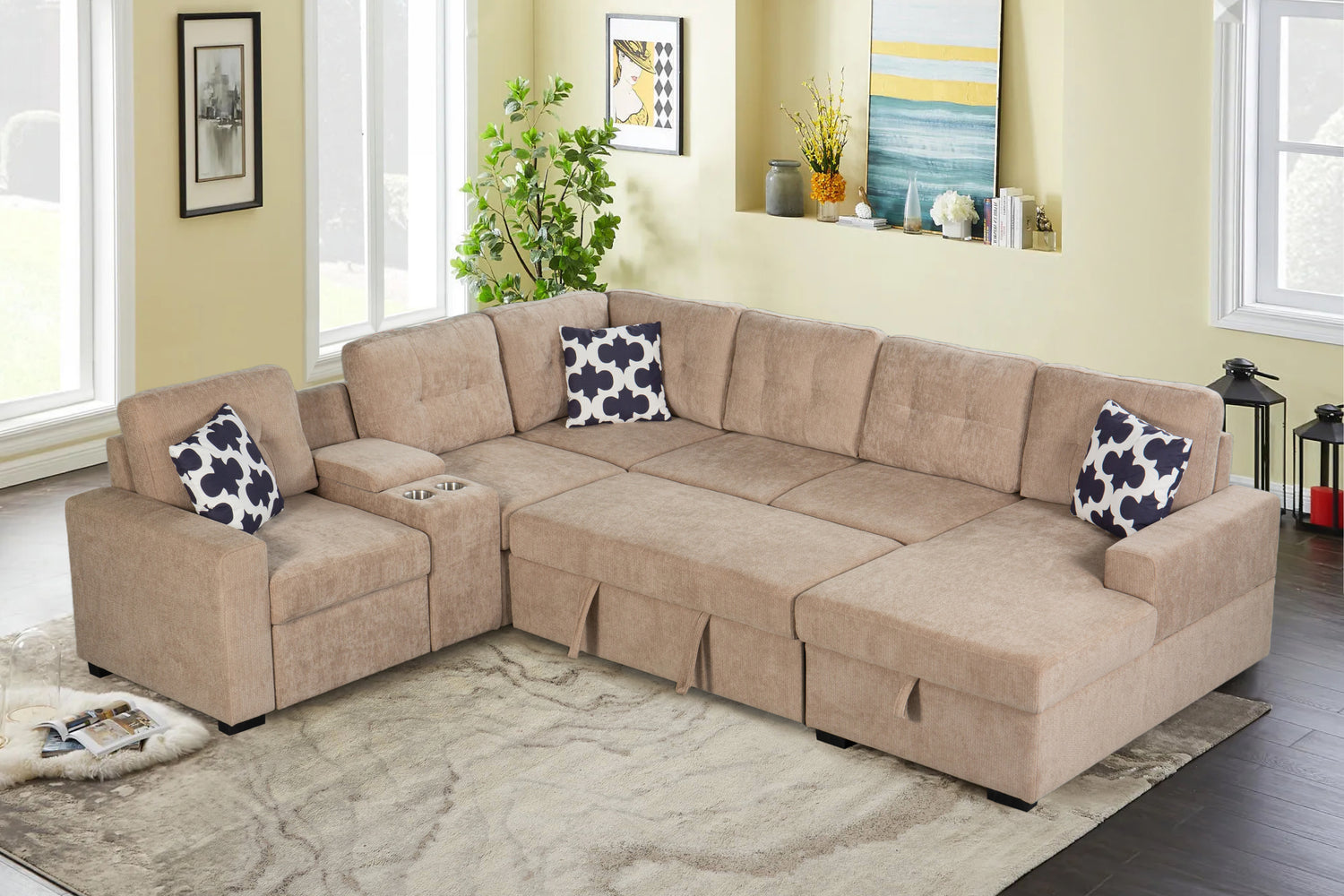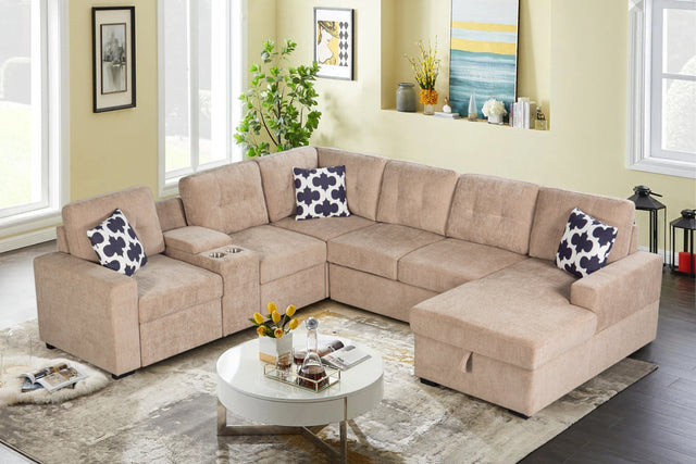 Multifunctional Modular L - Shaped Sectional Sofa with Built - in Cup Holders, Hidden Storage Compartments and Convertible Seating Design