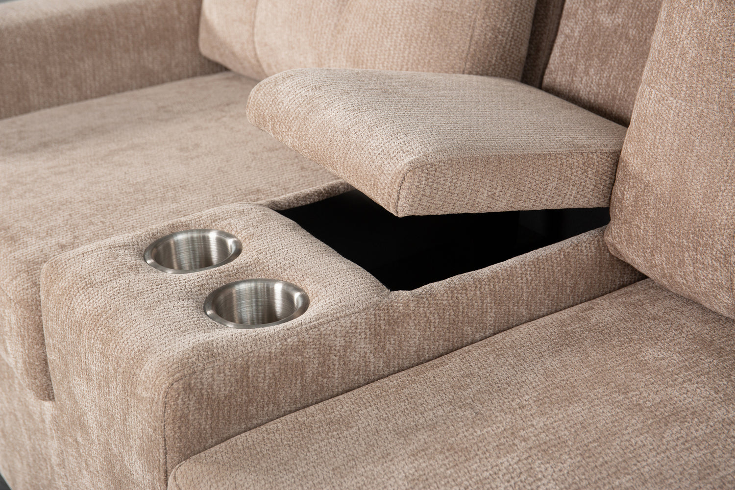 - Equipped with built - in dual stainless steel cup holders and a hidden storage compartment in the armrest, providing convenient space for beverages and small items while keeping the surface tidy.