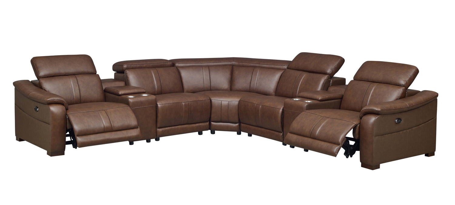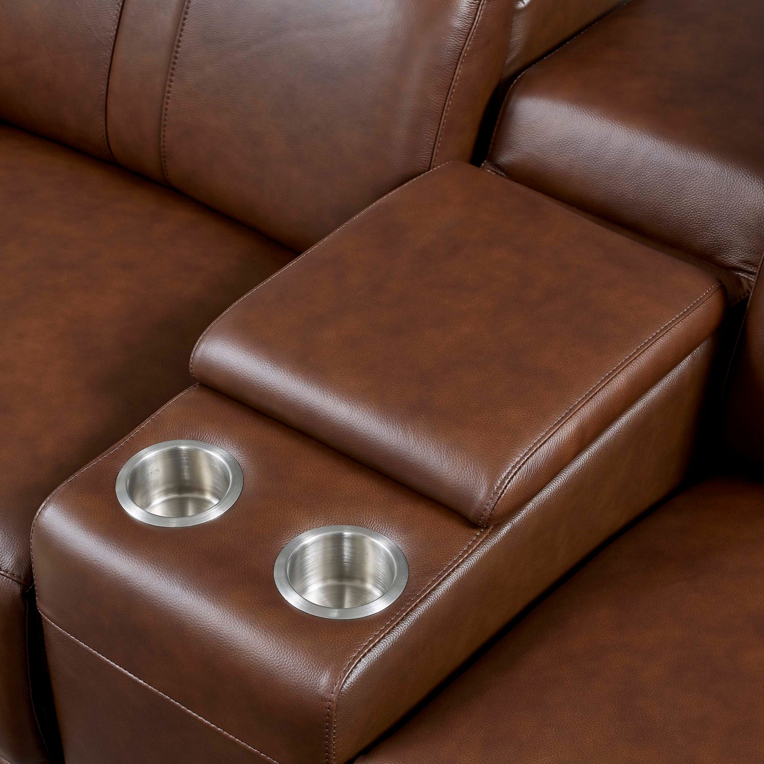 Seccional modular Leather Match con asiento reclinable, reposacabezas ajustable y consola de almacenamiento con portavasos