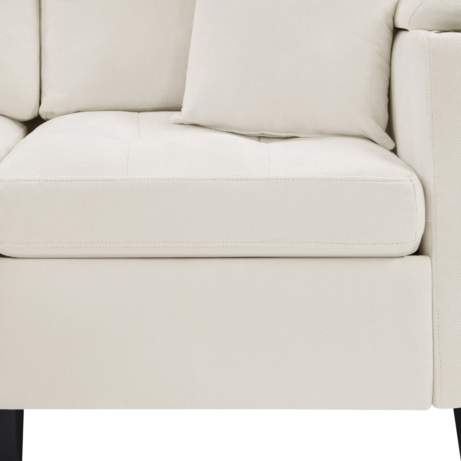 - Built-in Storage and Cup Holders for Convenience - The sofa is equipped with convenient storage compartments and cup holders in both armrests, offering a practical solution to keep your living space organized and clutter-free while enjoying your favorite drinks. Additionally, the right armrest features storage pockets for easy access to magazines, remote controls, or small items.