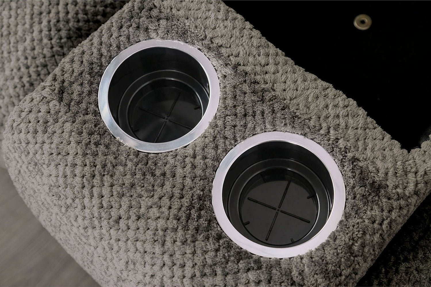 La mejor manera de ver una película es en grupo. Y puedes organizar una fiesta inolvidable con este sofá seccional. Los amplios asientos están tapizados en una suave tela de chenilla. El acolchado de espuma ofrece un asiento mullido y un reposacabezas excepcional. Los dos reposabrazos incluyen portavasos integrados y espacio para guardar bocadillos y el control remoto, a salvo de ese amigo que siempre quiere bajar el volumen de la película. Los asientos reclinables en los extremos completan esta impresionante estructura, que hará que recibir invitados sea pan comido.