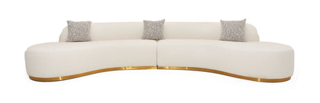 Sofá seccional curvo de tela blanca glamurosa con cojines beige | VIG
