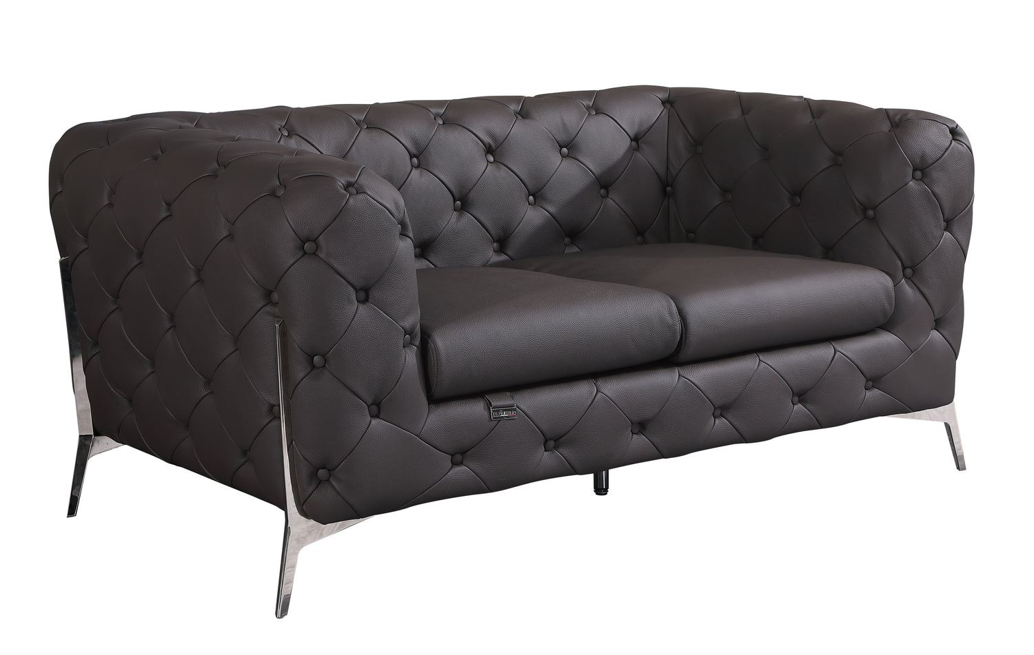 Loveseat de transición Global United tapizado en cuero italiano 100 % de grano superior
