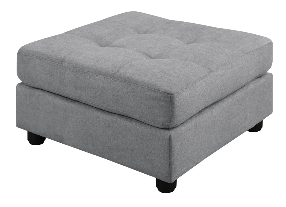 Este seccional modular de siete piezas ofrece un toque contemporáneo a una amplia sala de estar o área de entretenimiento. Completo con cuatro sillones sin brazos, dos sillas esquineras y una otomana, este seccional de transición crea el espacio de reunión perfecto para la familia y los invitados. Diseñado con cojines capitoné y tapizado en una tela tejida gris paloma, este lujoso conjunto de asientos es el lugar ideal para leer, echar una siesta, disfrutar de una serie de televisión y mucho más. Las patas negras ofrecen una ligera elevación y mayor estabilidad, definiendo la silueta de este diseño cuadrado. Por último, una otomana independiente, suspendida en el centro de este seccional en forma de U, también funciona como mesa de centro.