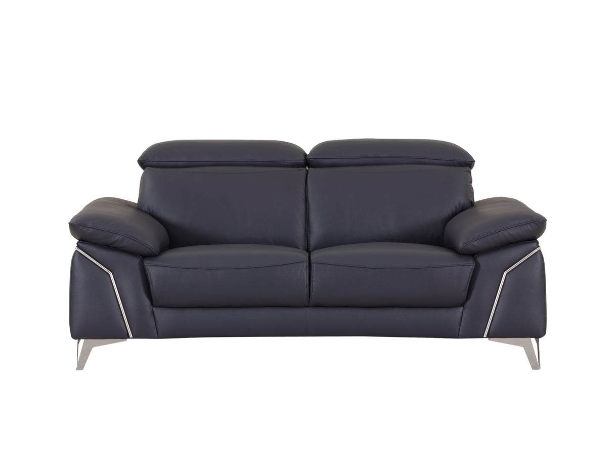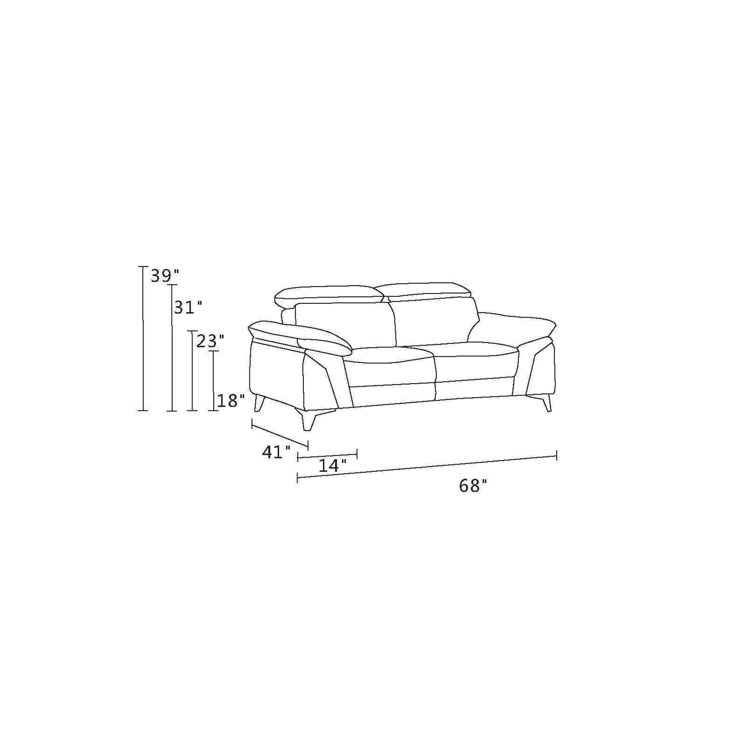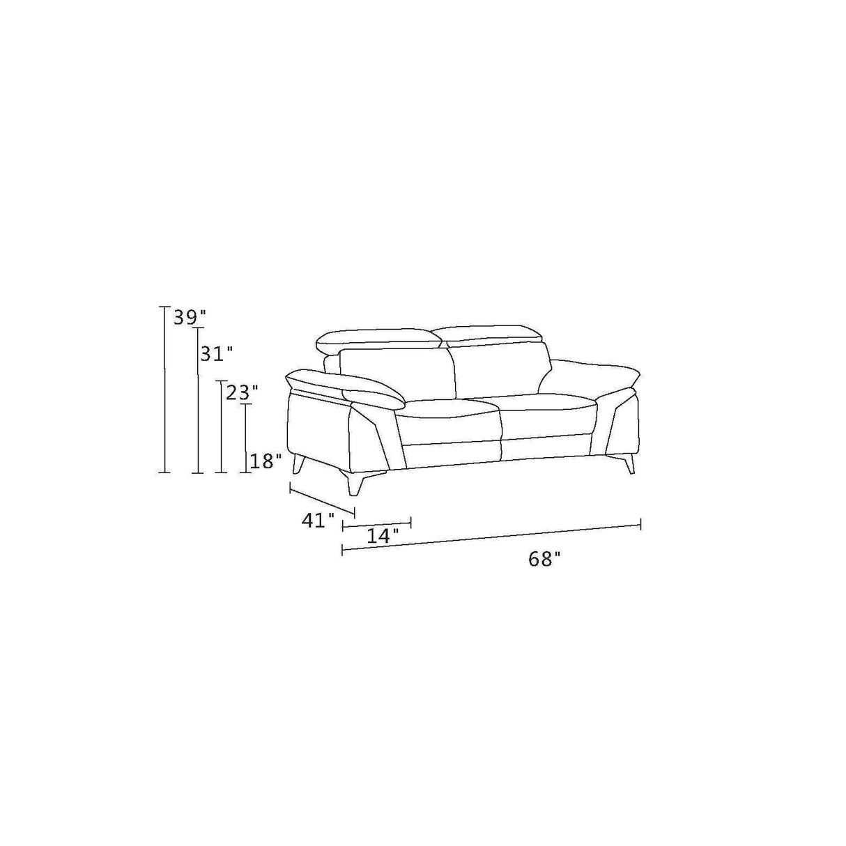 Este loveseat de cuero italiano de primera calidad combina un estilo sofisticado con una comodidad suntuosa. Su diseño elegante y discreto permite abatir los reposacabezas para maximizar la visibilidad. Los reposacabezas ajustables ofrecen soporte adicional para la comodidad del cuello, gracias a un sistema de trinquete japonés de vanguardia con múltiples posiciones ajustables. Las patas tienen un diseño arquitectónico con acabado cromado. Desde el diseño hasta el producto final, cada paso del proceso de producción se somete a rigurosos controles de calidad. La selección del cuero italiano de primera calidad para el tapizado y la madera maciza brasileña para la estructura del sofá se realiza con el máximo respeto por las materias primas más finas. Italia es mundialmente conocida por su cuero de alta calidad. Su alta calidad se puede percibir en cada juego de sofás.  Estructura de madera dura secada al horno con bloques de esquina reforzados  Estructura acolchada suave hecha con espuma de poliuretano envuelta en fibra de poliéster  Construcción de resortes sinuosos de calibre 8  Amortiguación de espuma de alta densidad de 3 capas  Cuero italiano de grano superior  Estructura de madera brasileña maciza  Soporte lumbar  Reposacabezas ajustables grandes