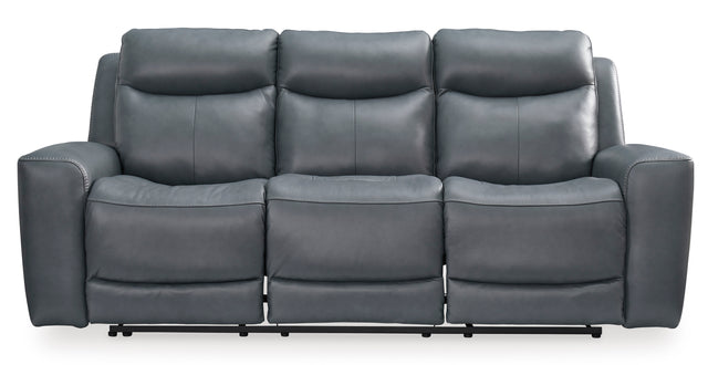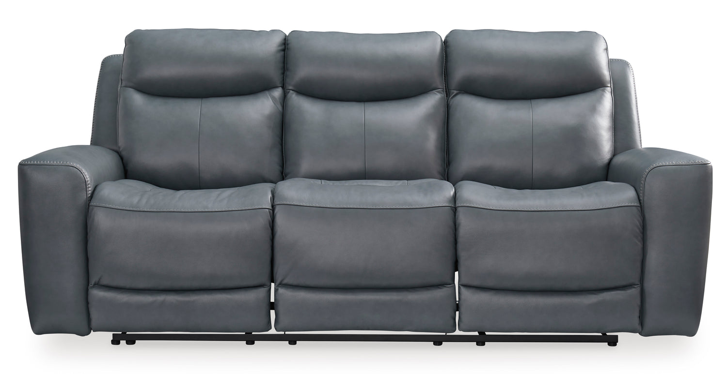 Sofá reclinable eléctrico Mindanao con acabado en cuero gris acero a juego – Ashley Furniture