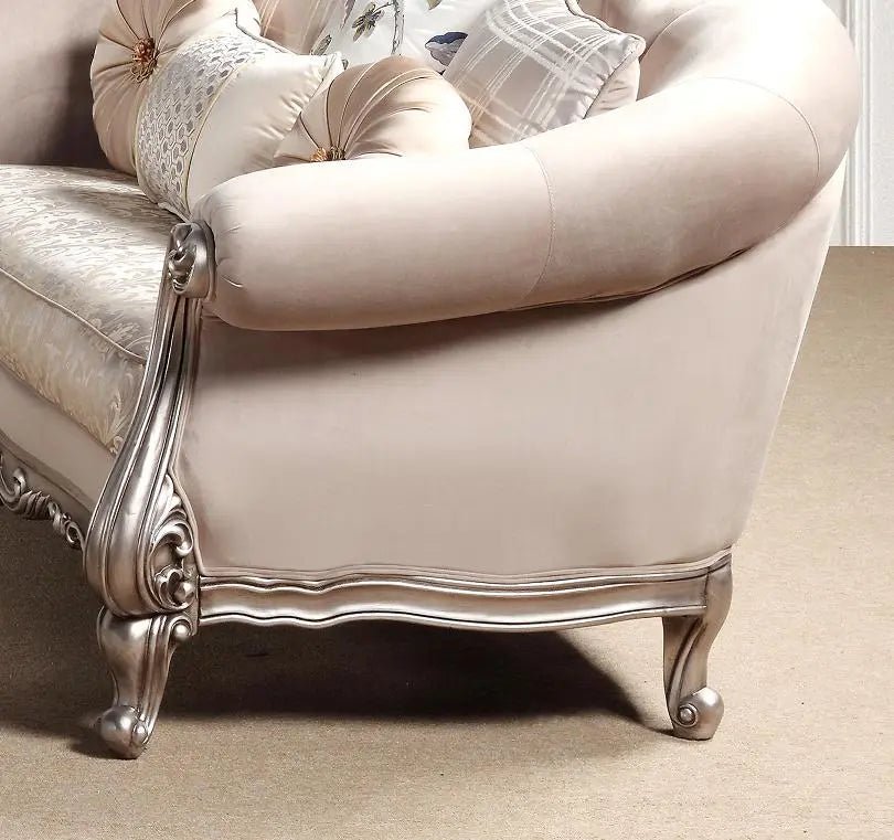 Sofá de dos plazas Cristina de estilo tradicional con acabado plateado de Cosmos Furniture