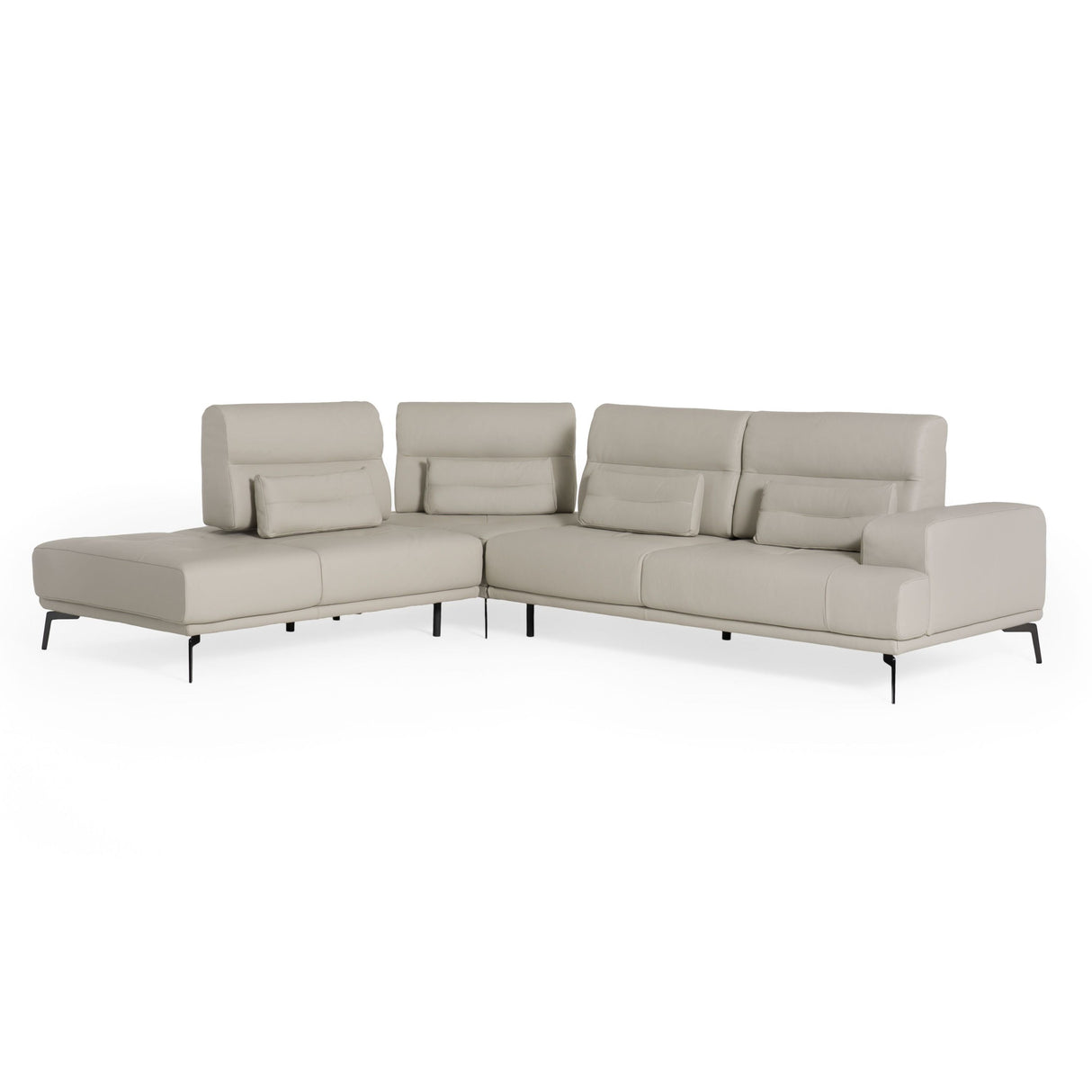 Lamod Italia Sunset - Sofá seccional italiano contemporáneo de cuero gris, con vista a la izquierda - VGCCSUNSET-LAF-GRY-SECT | VIG