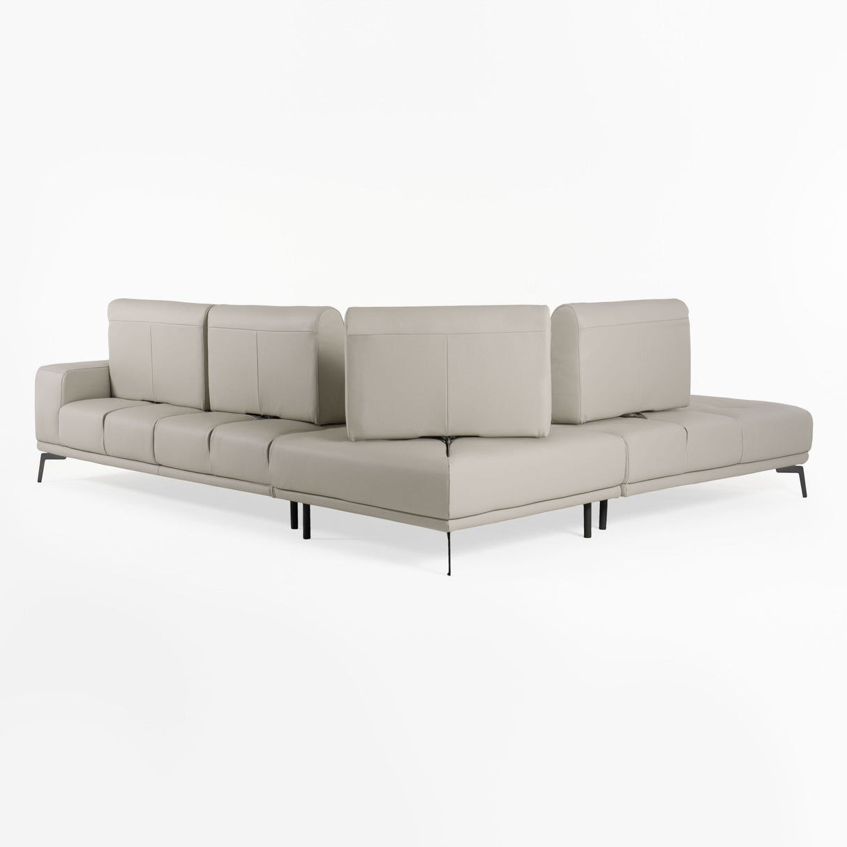 Lamod Italia Sunset - Sofá seccional contemporáneo italiano de cuero gris, con vista a la izquierda