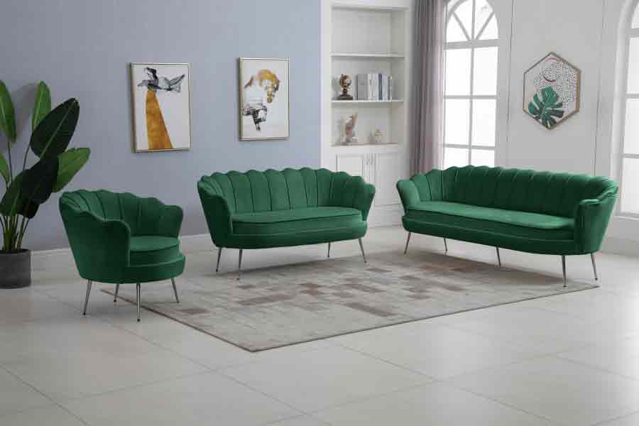 Loveseat de terciopelo Gardenia en verde - 684Green-L | Meridian
