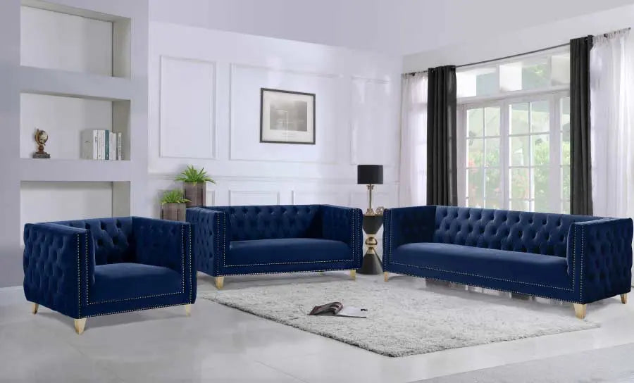 Meridian Furniture - Sofá Michelle de terciopelo azul marino - 652Navy-S