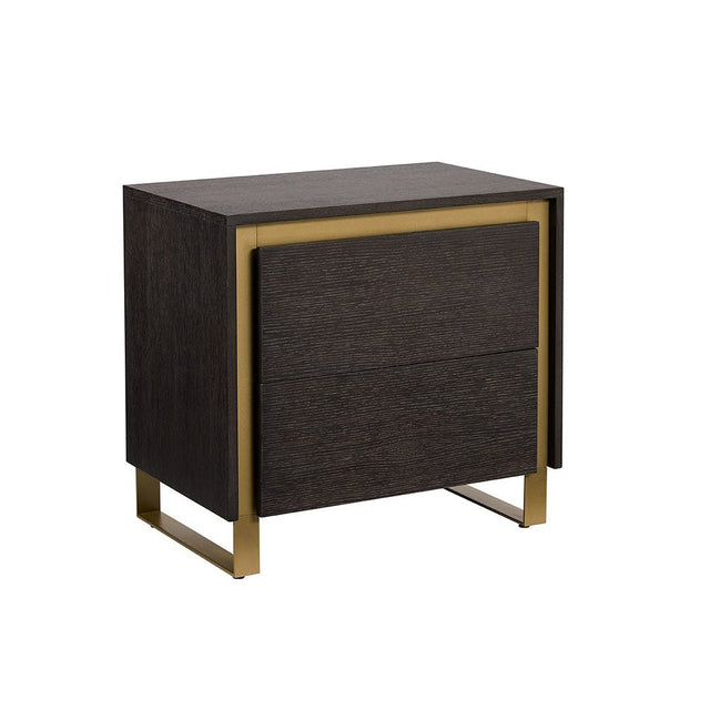 Con un estilo refinado, esta mesita de noche clásica embellecerá cualquier dormitorio. Cuenta con dos cajones de apertura a presión y está fabricada con una estructura de madera maciza de roble con chapa de roble gris. Se completa con patas de acero con acabado bronce rústico. Combina a la perfección con la cómoda y la cama Alvaro.
