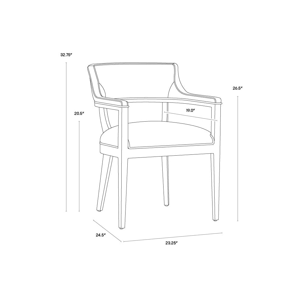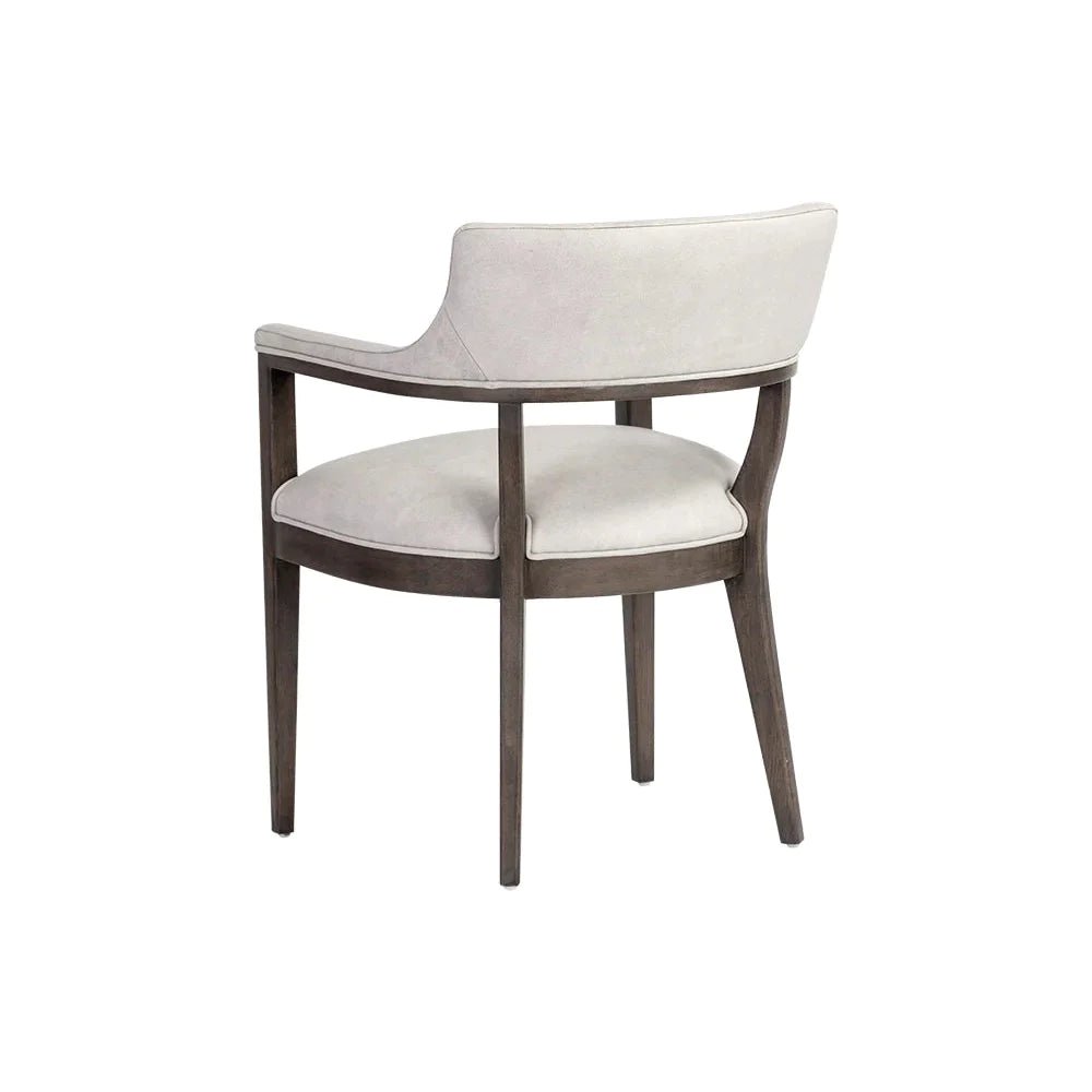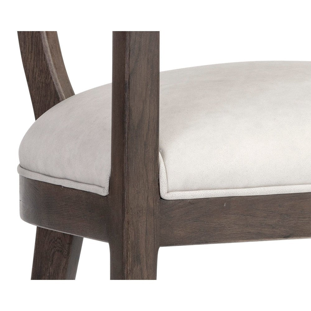 Sillón de comedor moderno de mediados de siglo con respaldo abierto. Disponible en cuero gris claro o tabaco Shalimar, con estructura de madera maciza de roble expuesta. Cuidado: Este diseño está elaborado con cuero 100 % genuino. El cuero es un material natural; por lo tanto, las marcas, arrugas, surcos y pequeños arañazos son características aceptables y apreciadas. No hay dos piezas iguales. Visite nuestra página de Cuidado del Producto para obtener más información sobre cómo garantizar la belleza duradera de esta pieza.