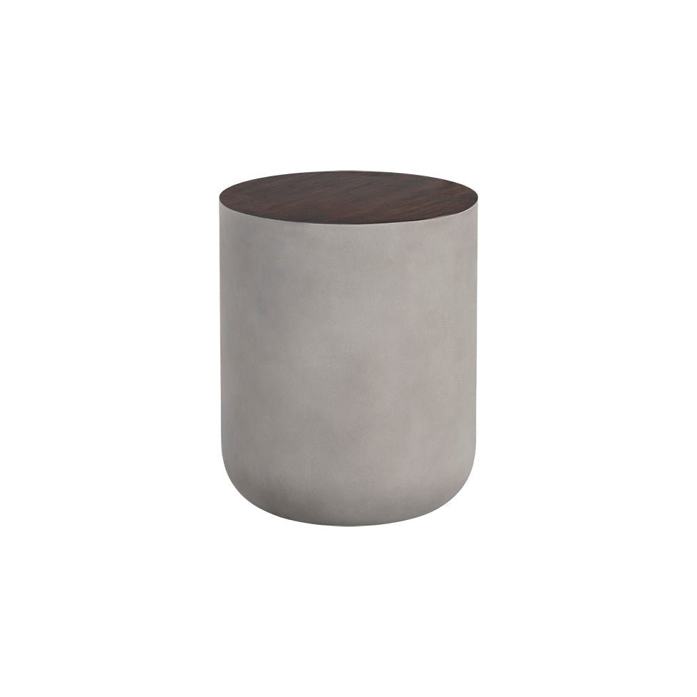 Esta atrevida mesa auxiliar de estilo tambor aportará estilo y funcionalidad a cualquier espacio. Fabricada íntegramente en hormigón, su base redonda presenta un acabado gris con un elegante tablero de madera marrón oscuro. También disponible una mesa de centro a juego. Elaborada con una mezcla de hormigón natural, cada pieza tendrá un aspecto diferente, con variaciones de tonos grises que se realzarán con el tiempo.