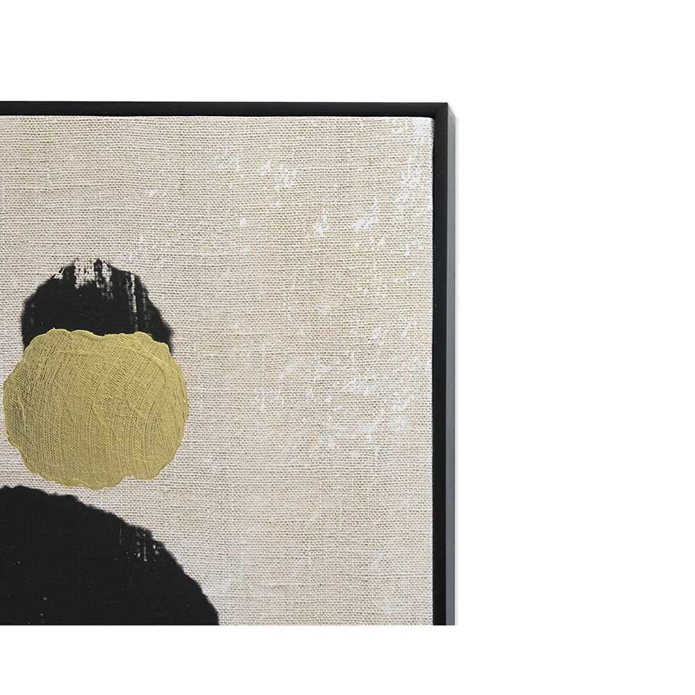 Este díptico de nuestra colección Luxe Art presenta pinceladas fluidas con detalles de pan de oro, decorados a mano, que se deslizan sobre un lienzo texturizado para lograr una apariencia elegante y natural. Una paleta neutra de negro, gris topo, blanco y dorado define esta pieza. Cuenta con un marco de madera maciza negra. Debido a la naturaleza reflectante del pan de oro, es posible que las imágenes en el sitio no reflejen con precisión las características artesanales.