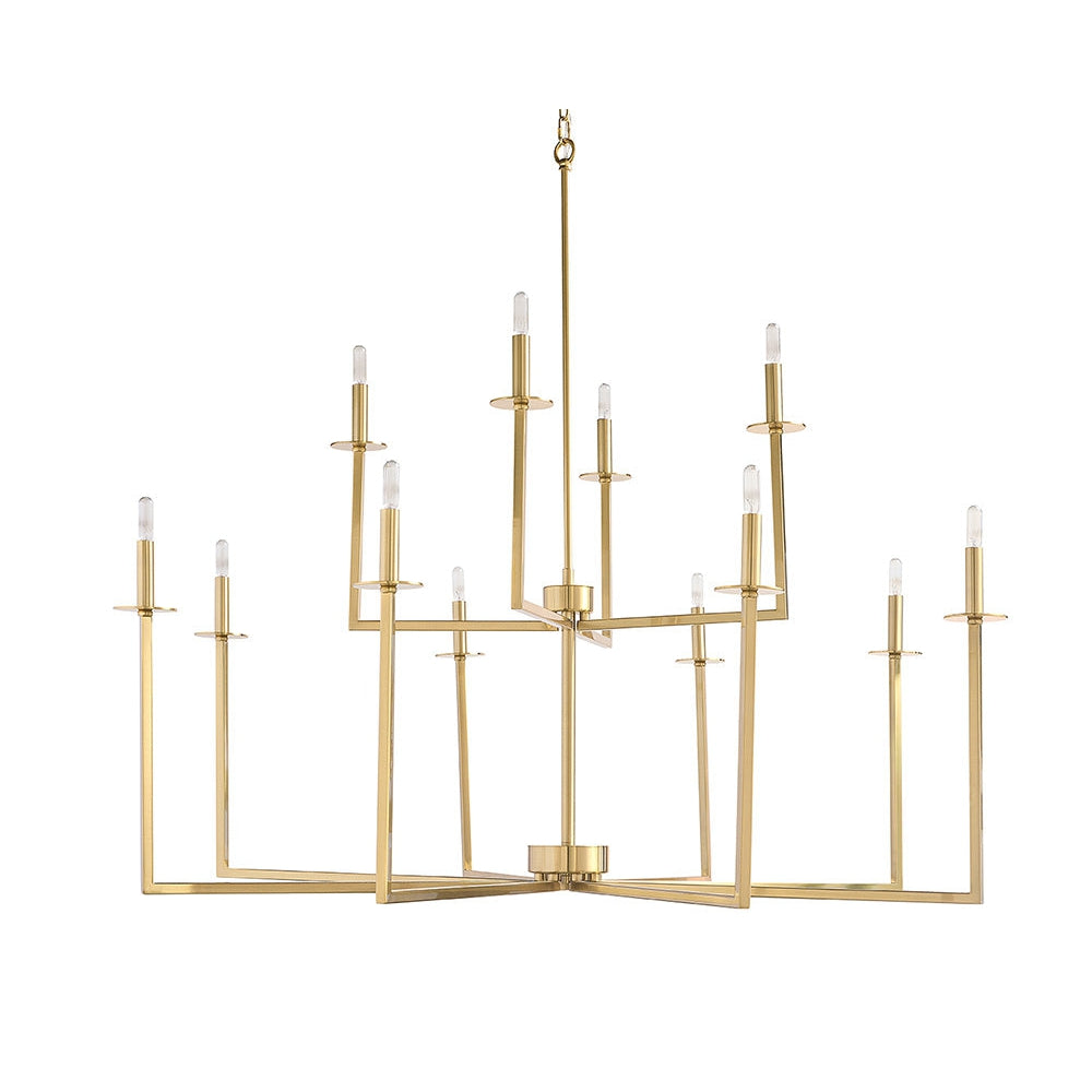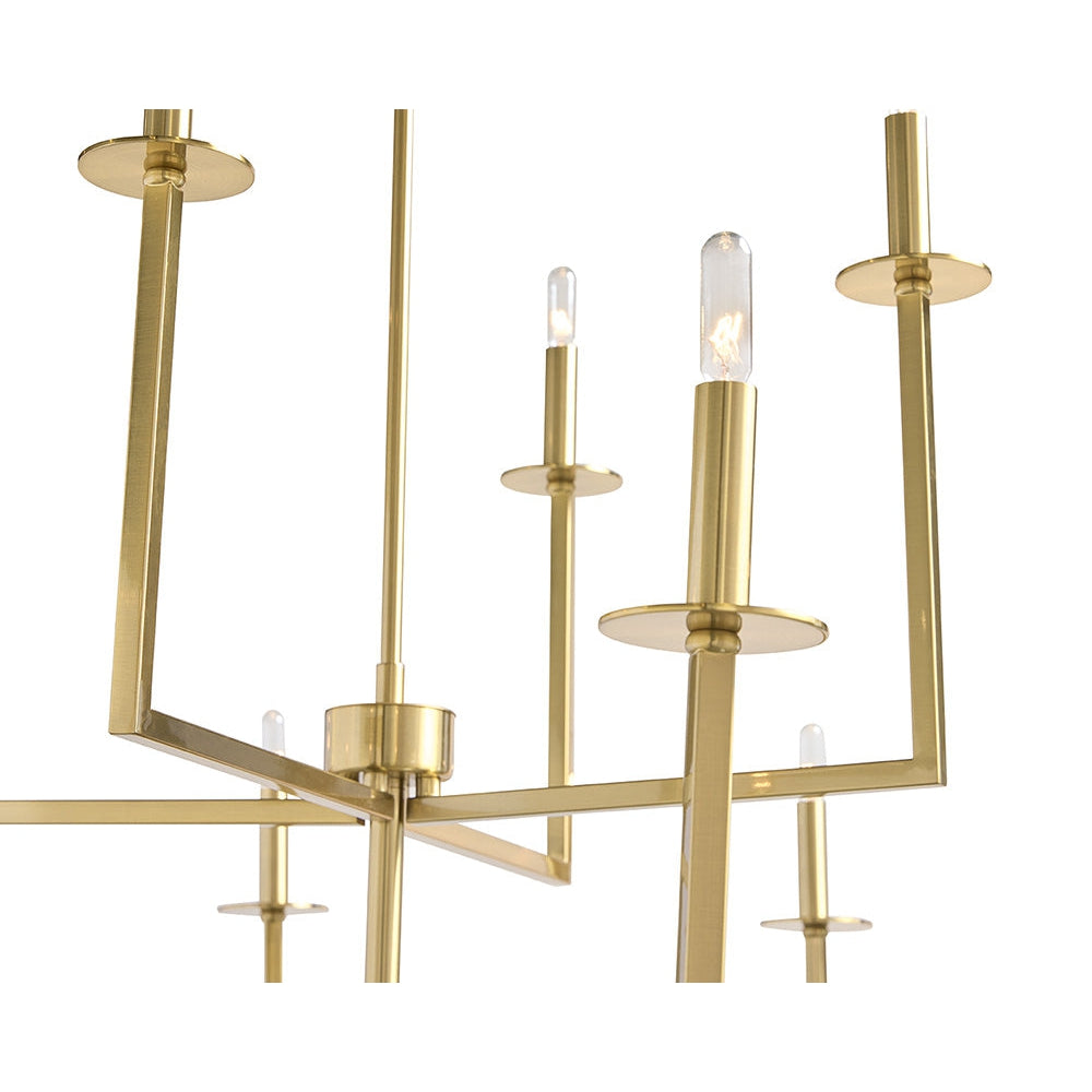 Una versión moderna y renovada del diseño tradicional de candelabro, esta imponente lámpara ilumina cualquier habitación. Fabricada con una impresionante estructura de metal y acabado en latón.