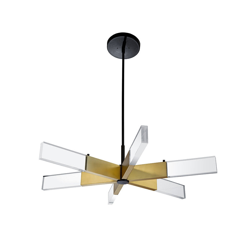 Añada glamour a cualquier espacio con esta atractiva lámpara de araña. Fabricada con una estructura de metal con acabado de latón y pantallas de acrílico transparente.