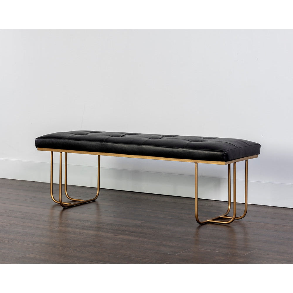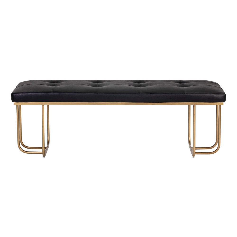 Este elegante banco proporcionará un asiento adicional a la sala de estar y al salón. Cuenta con un asiento capitoné de cuero sintético negro Bravo y patas curvas de hierro de latón antiguo.