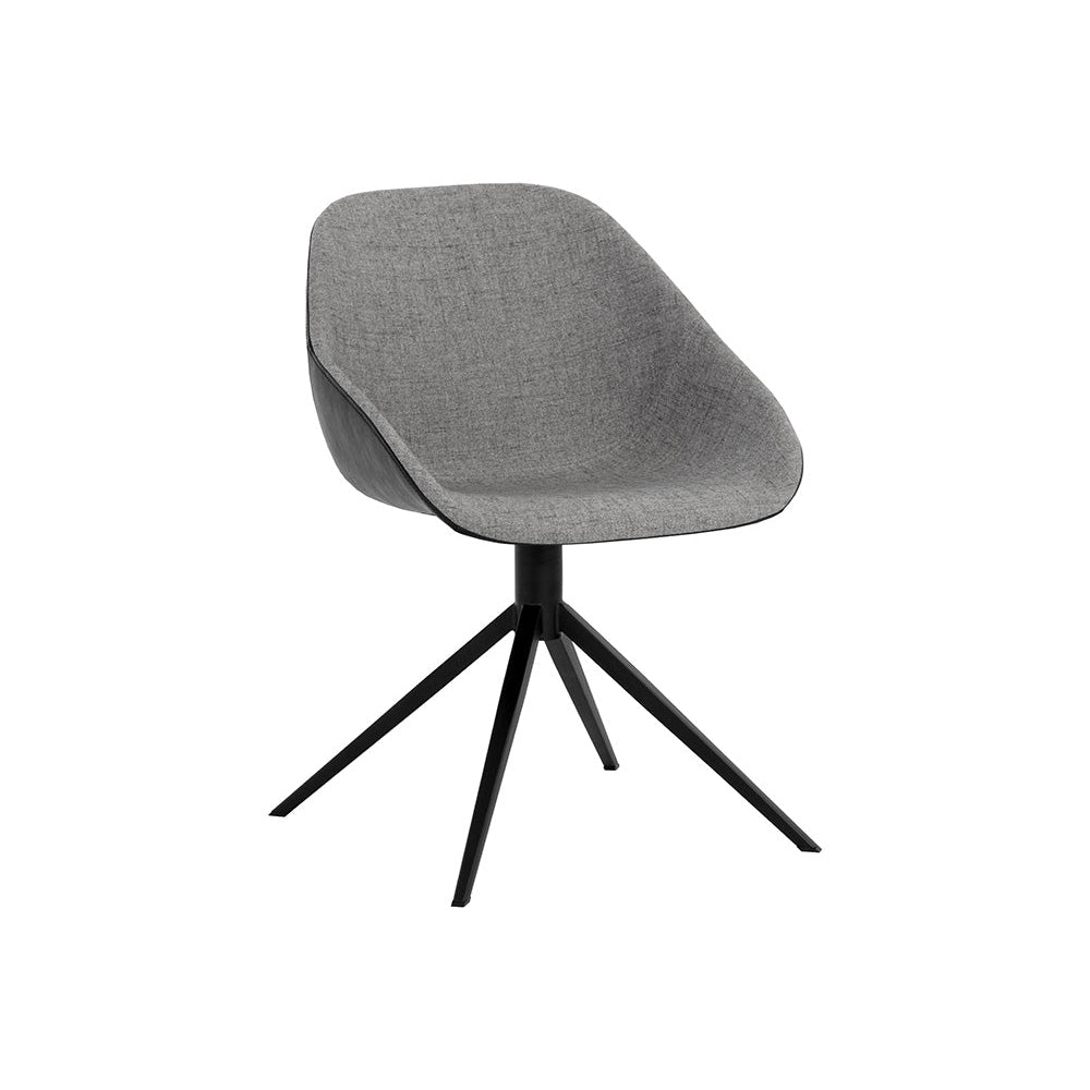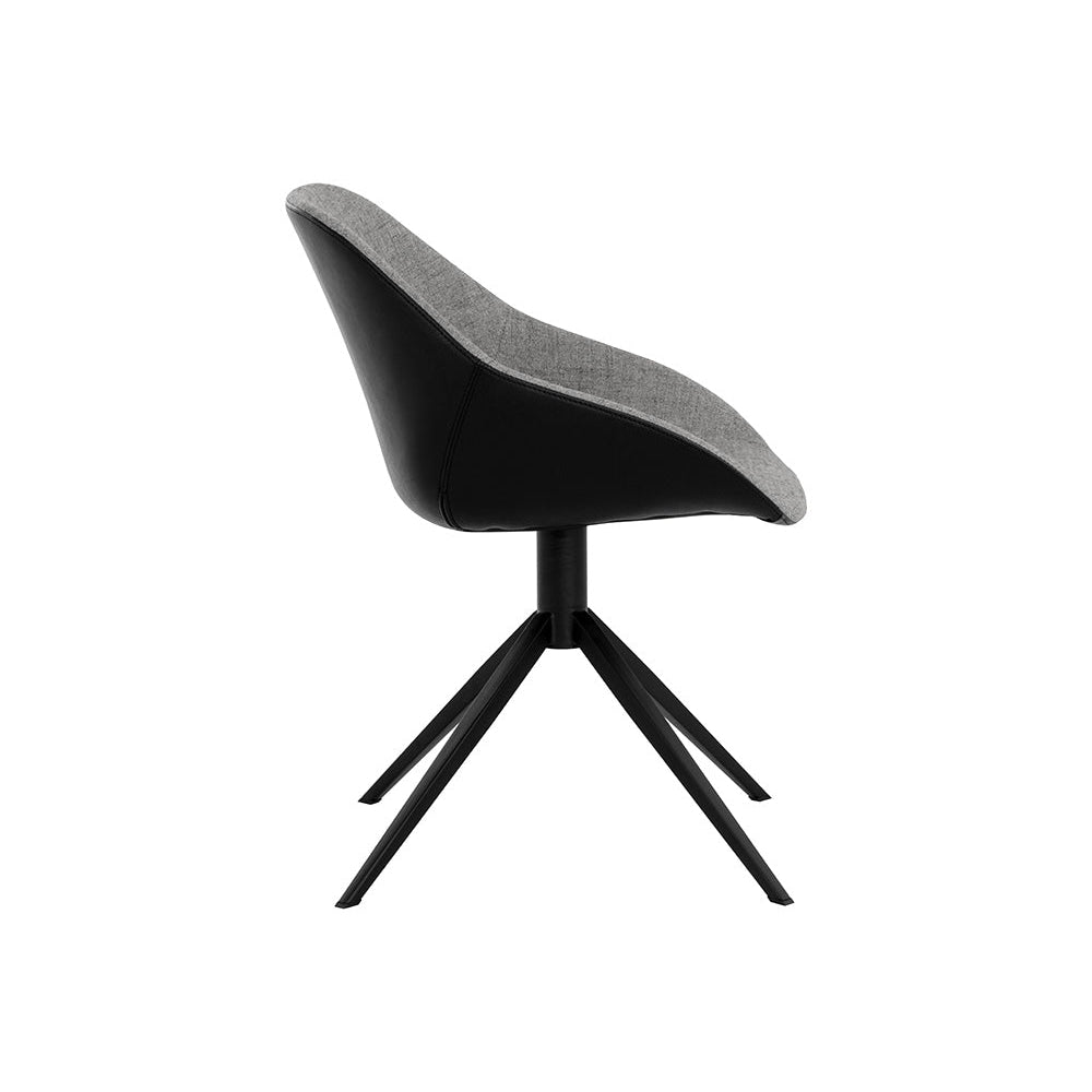 Esta silla de comedor giratoria irradia un encanto masculino. Presenta un asiento esculpido en dos tonos de tela gris noviembre con un exterior de piel sintética marrón canela. Sus patas cónicas de acero negro le dan un aspecto luminoso y espacioso. Ideal para comedores, cocinas y bares de todos los tamaños. Cuidado: Este diseño está elaborado con piel sintética. La piel sintética se fabrica para reflejar las características naturales del cuero; por lo tanto, las variaciones de color, las marcas, las arrugas, las ranuras y los ligeros arañazos son características apreciadas. No hay dos piezas iguales. Visite nuestra página de Cuidado del Producto para obtener más información sobre cómo garantizar la belleza duradera de esta pieza.