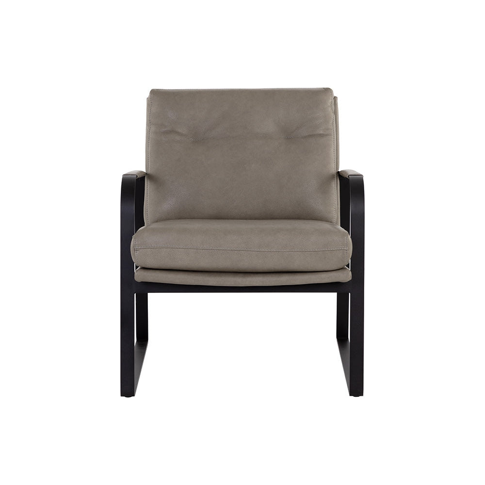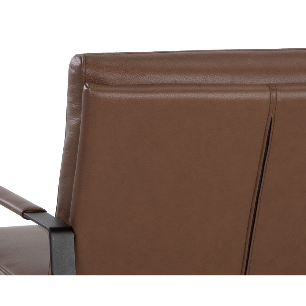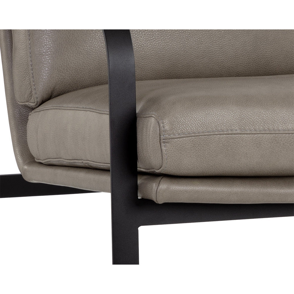 Con un diseño de inspiración industrial, este sillón moderno de mediados de siglo es perfecto para cualquier espacio. Cuenta con un asiento generosamente acolchado, tapizado en piedra Missouri y piel de vaca italiana color caoba. Incluye reposabrazos forrados en piel a juego y patas de acero con recubrimiento en polvo negro. Cuidado: Este diseño está elaborado con piel 100 % auténtica. La piel es un material natural; por lo tanto, las variaciones de color, marcas, arrugas, surcos y pequeños arañazos son características aceptables y apreciadas. No hay dos piezas iguales. Visite nuestra página de Cuidado del Producto para obtener más información sobre cómo garantizar la belleza duradera de esta pieza.