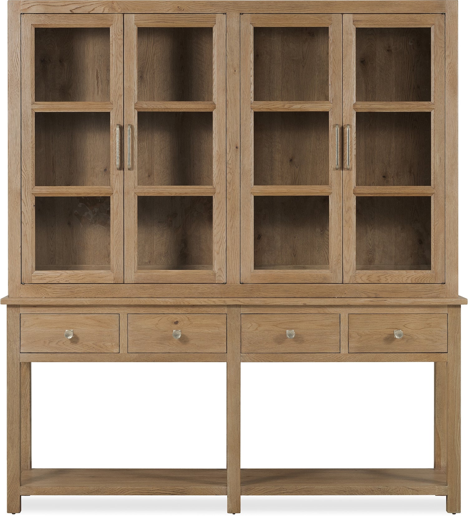 Crafted from oak solids and oak veneers with seeded glass, the Driftwood Display Sideboard reflects Hooker Furniture’s commitment to quality and longevity. Each finish undergoes a meticulous multi-step finishing process of up to 16 steps, including hand-rubbing and padding, resulting in exceptional depth, clarity, and durability. Veneer-over-engineered wood construction enhances dimensional stability, ensuring lasting beauty through everyday use.