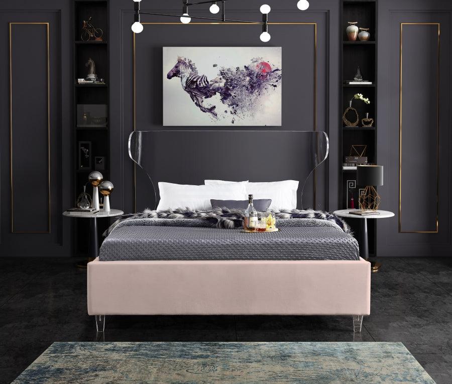 Meridian Furniture - Cama Queen Ghost de terciopelo rosa - GhostPink-Q