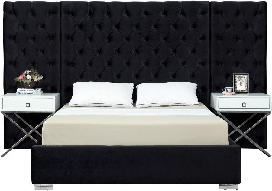 Meridian Furniture - Cama Queen Grande de terciopelo negro - GrandeBlack-Q
