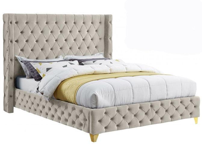 Meridian Furniture - Cama King Savan de terciopelo color crema - SavanCream-K