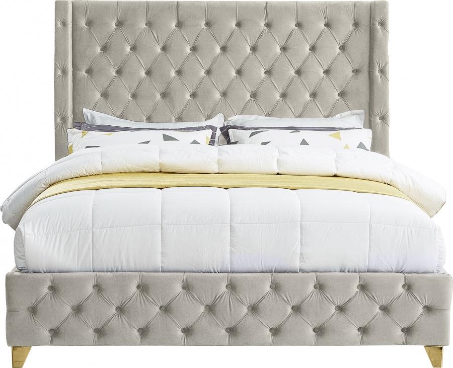 Meridian Furniture - Cama Queen Savan de terciopelo color crema - SavanCream-Q
