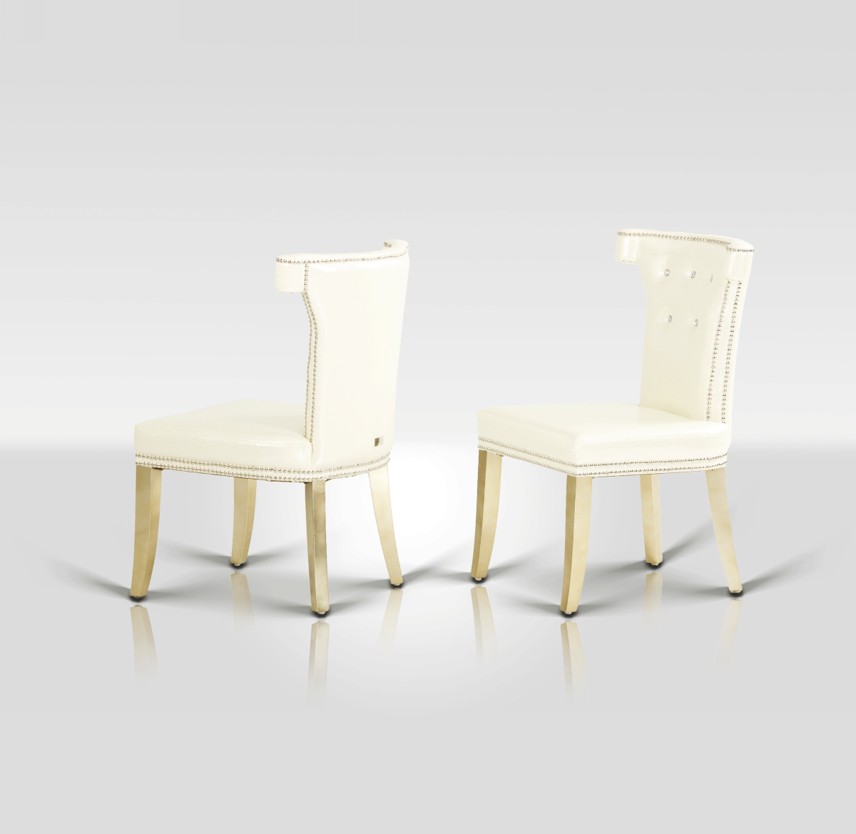 Los cristales adornan los bordes de la silla auxiliar Beatrice de cuero blanco con textura de cocodrilo. Sus patas doradas realzan el diseño de esta glamurosa silla, dándole un aspecto completo y refinado. Combínala con la mesa de comedor Imperial. Pertenece a la Colección de Lujo A&X Casa.