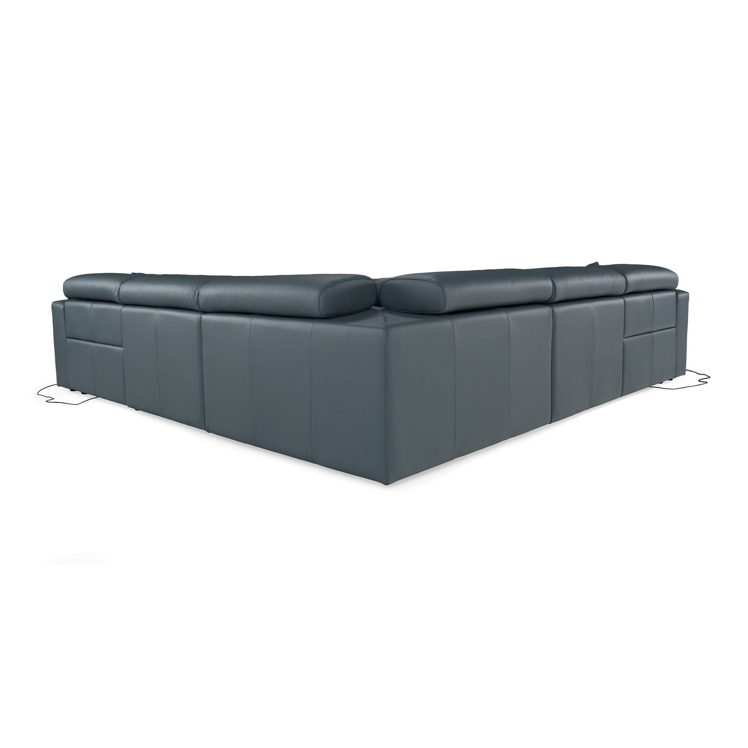 Dalton Modern Italian Blue Leather Sectional with Power Recliners
