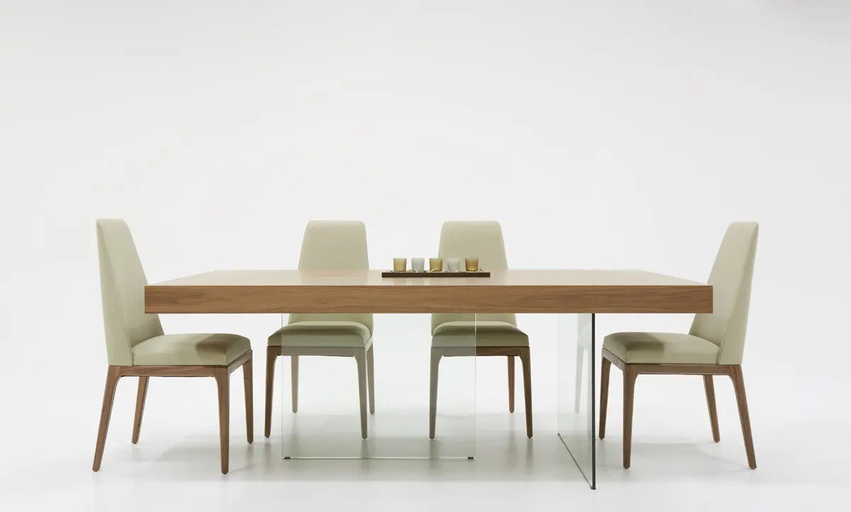 Mesa de comedor moderna Modrest Encino de nogal y vidrio - VGCNCP1712D-200100-V36F-P2 | VIG