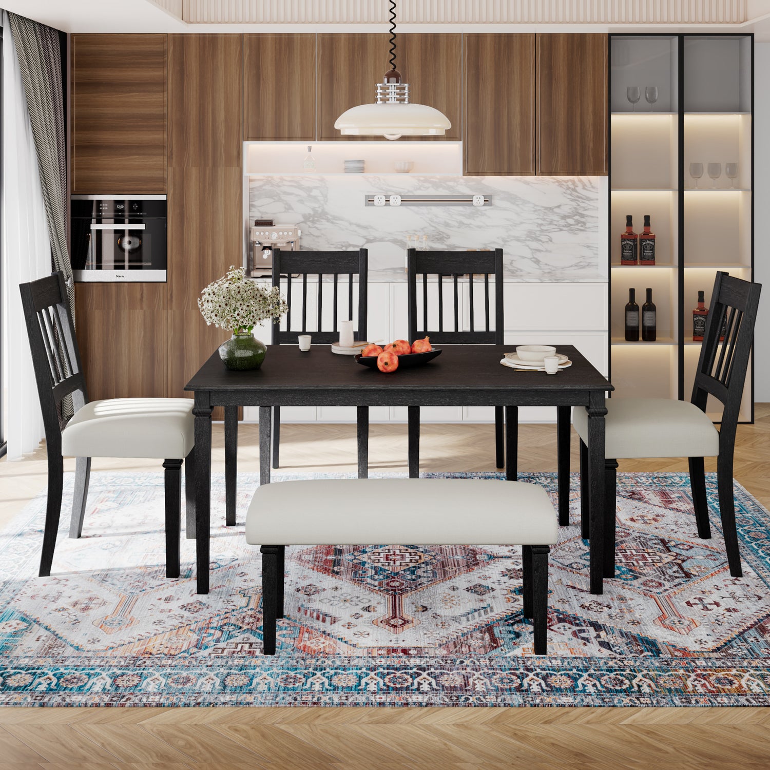 - ESTILO CAMPESTRE CLÁSICO: Esta mesa, sillas y banco crean un ambiente rústico y sencillo. Los exquisitos patrones decorativos en las patas de madera de caucho despiden la monotonía y la monotonía, aportando calidez y rusticidad al comedor, la cocina o el salón. Disponible en dos combinaciones de colores (MARRÓN/GRIS COLA DE MILANO) para combinar con diferentes estilos decorativos.