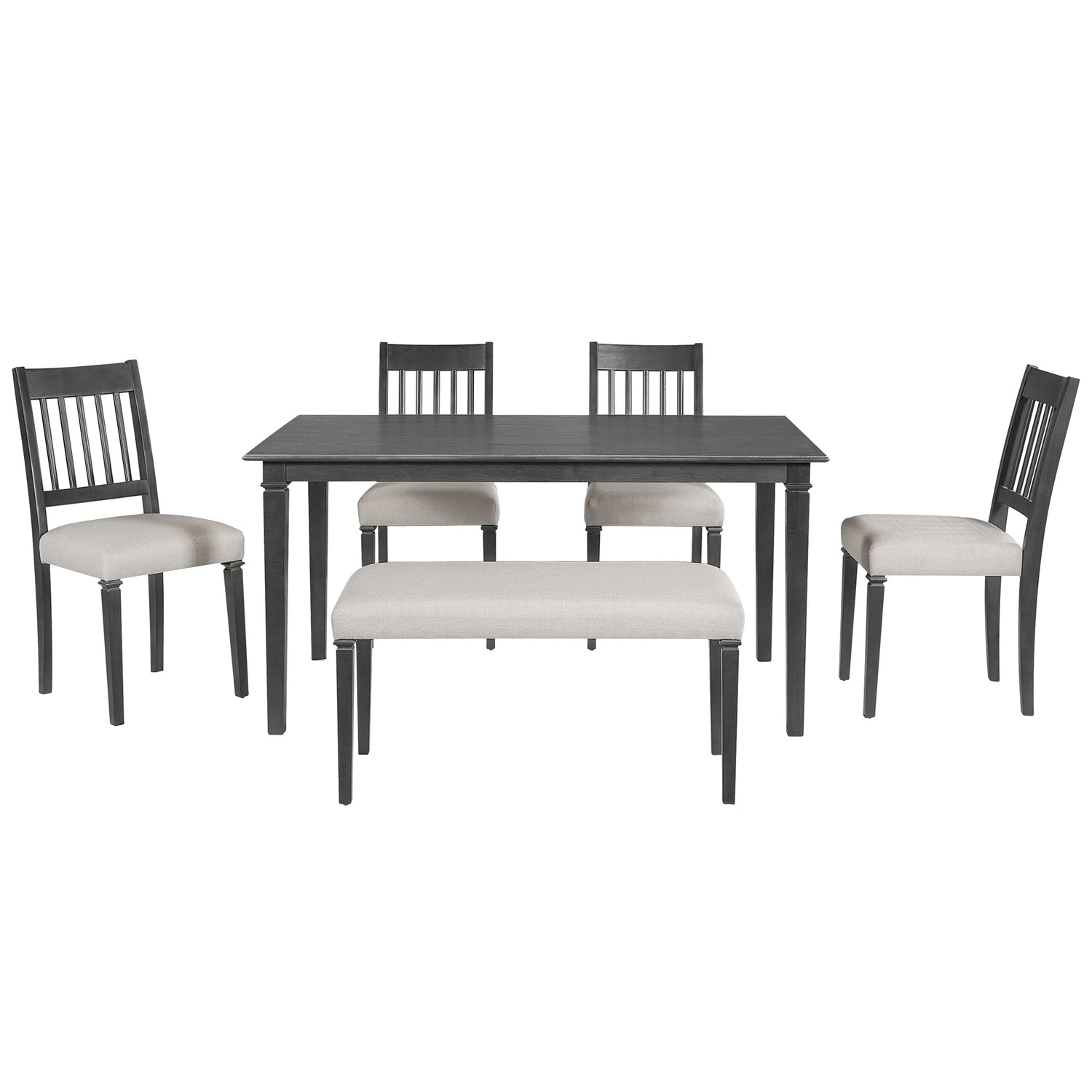 Juego de comedor retro de 6 piezas, juego de muebles de cocina clásicos, mesa rectangular de madera y 4 sillas con banco para cocina y comedor (fácil montaje, ahorra espacio) (GRIS COLA DE MILANO)
